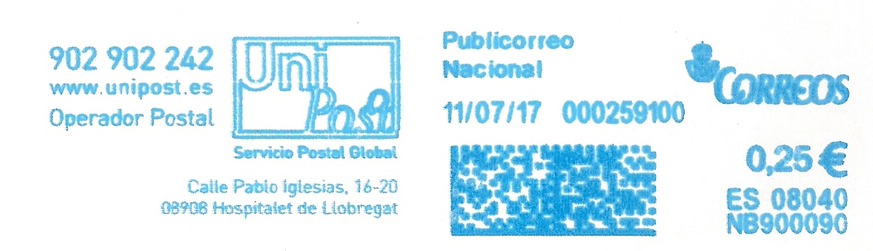Otra impronta de ecological mailing PB700583 que obviamente cambia su relación comercial con Correos