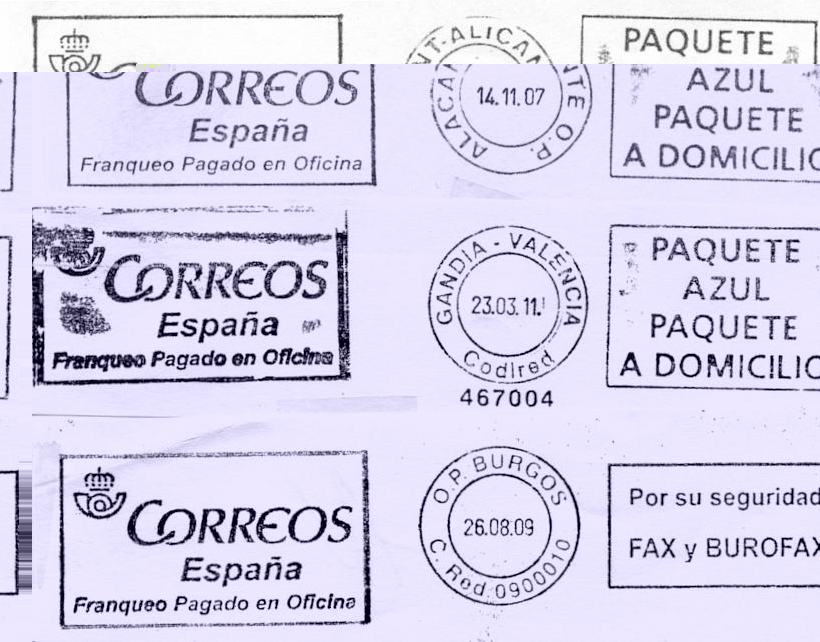 - Las dos semicircunferencias dentro del círculo del fechador, no son ningún defecto pues los he encontrado también en dos ejemplares, ambos con Codired, de Betera 5-3-10 y Gandía 23-3-11(muestra).