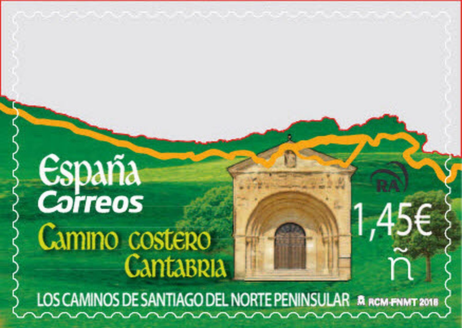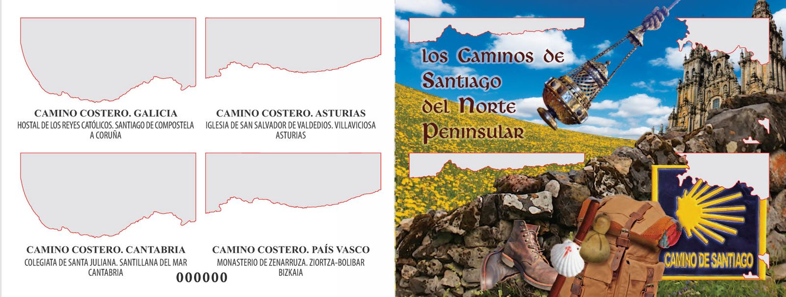 Con un carné troquelado con el perfil de la costa del norte de la Península, formado por ocho sellos autoadhesivos Correos quiere destacar el reconocimiento por la UNESCO de la inclusión en la Lista de Patrimonio Mundial el bien Los Caminos de Santiago del Norte Peninsular, como ampliación del Camino Francés, ya declarado Patrimonio Mundial en 1993. Los Caminos del Norte Peninsular son cuatro rutas que suman 1.499 Km a los 800 km del Camino Francés y que se extiende por las comunidades autónomas del País Vasco, La Rioja, Cantabria, Asturias y Galicia. Uno de estos caminos es el Camino Costero, ruta que se ha destacado en foil para ver la ruta. Nace en Irún y continúa en dirección a Compostela, dejando a su paso un rastro imborrable en ciudades como San Sebastián, Bilbao, Santander o Gijón hasta adentrarse en Galicia. Se trata de una de las vías con mayor historia junto con el Camino Primitivo, y con una antigüedad similar a la ruta francesa.