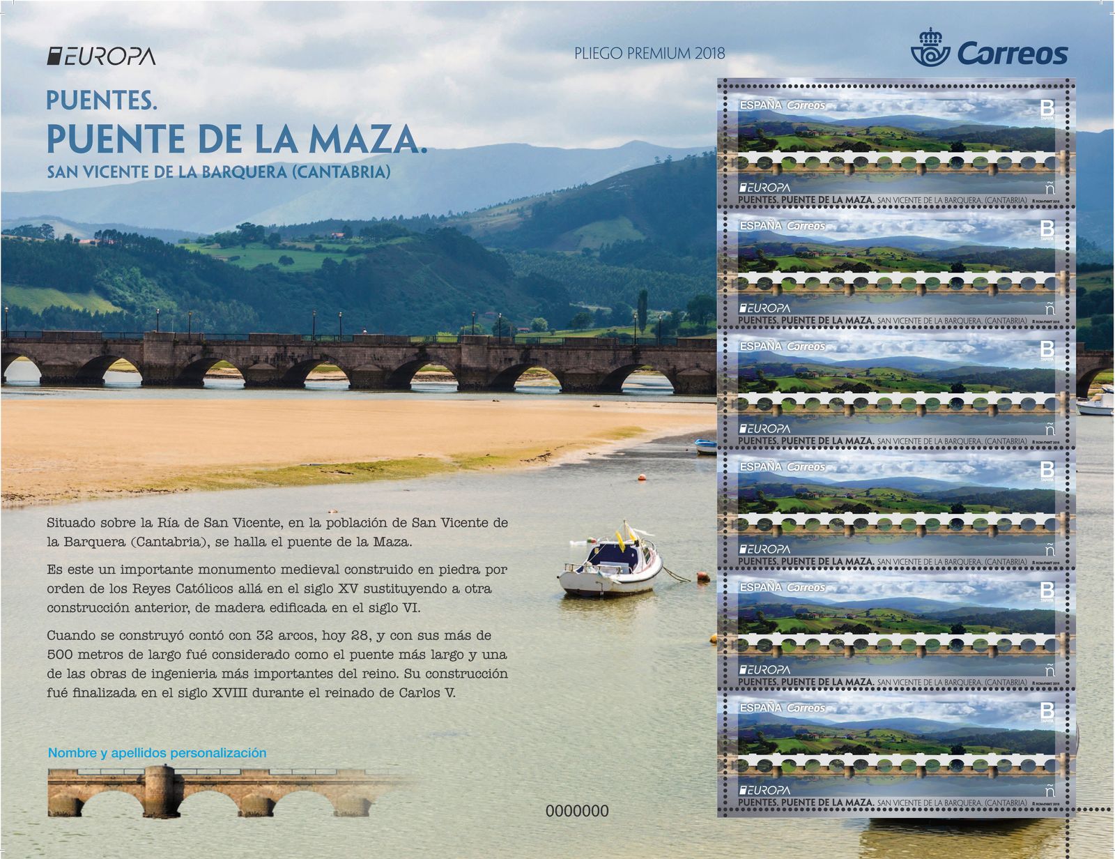 El sello, además del nombre de esta obra arquitectónica, incluye el logotipo de la serie Europa y la ya reconocida letra “ñ”, que representa la marca España.