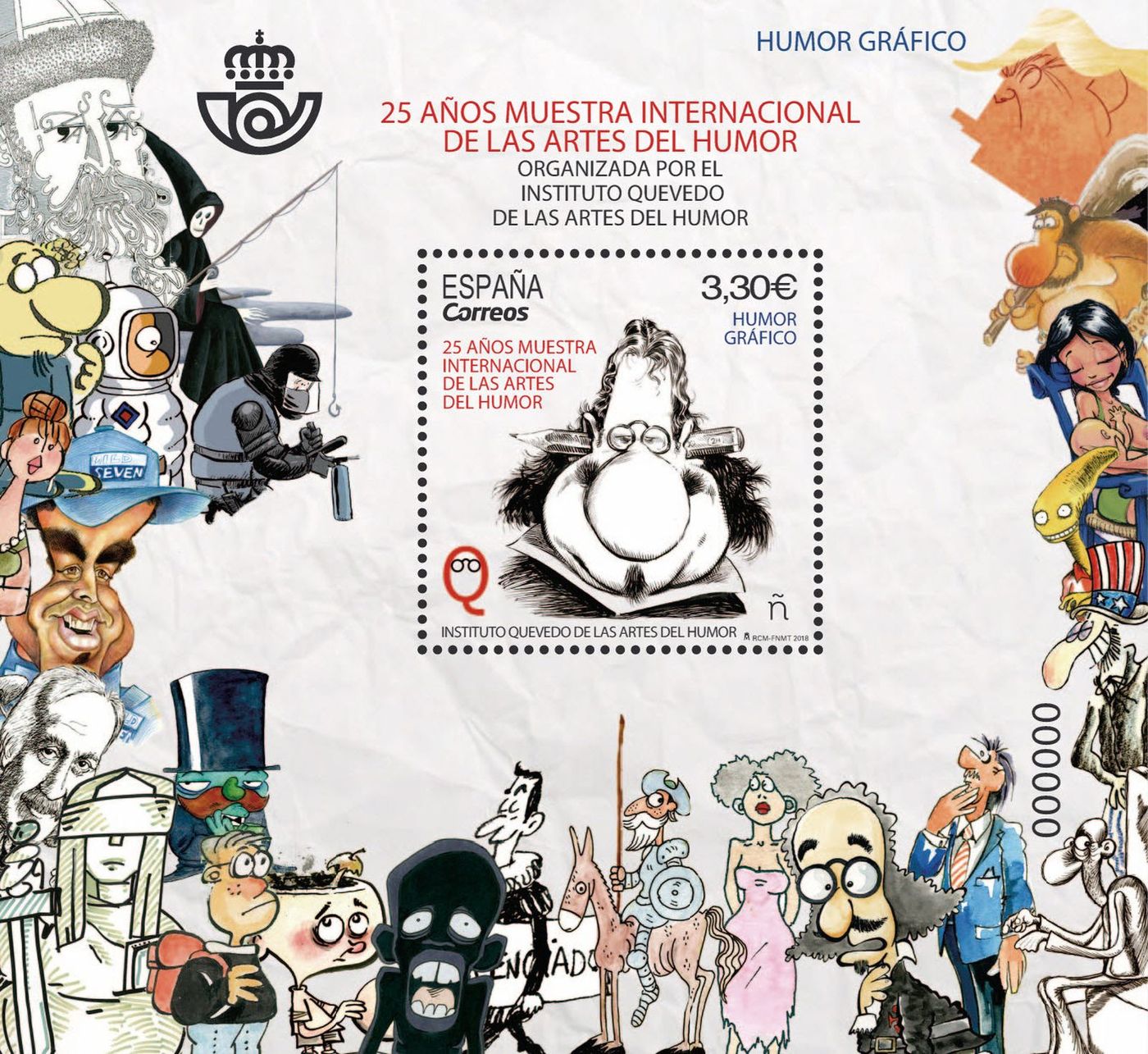 Dios mediante, el 27 de abril de 2018, dentro de la serie «Humor Gráfico», se emitirá una hoja bloque y un sello de correo dedicados a los «25 años de la Muestra Internacional de las Artes del Humor», que organiza el Instituto Quevedo de las Artes del Humor.
