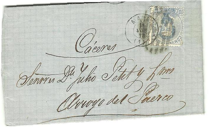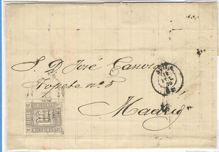 Se trata de una de las parrillas con cifra más difíciles de conseguir en carta, la 18 de Ávila, sobre un sello fiscal de Recibos de la emisión de 1870 que se puso en lugar del sello de la Matrona.
