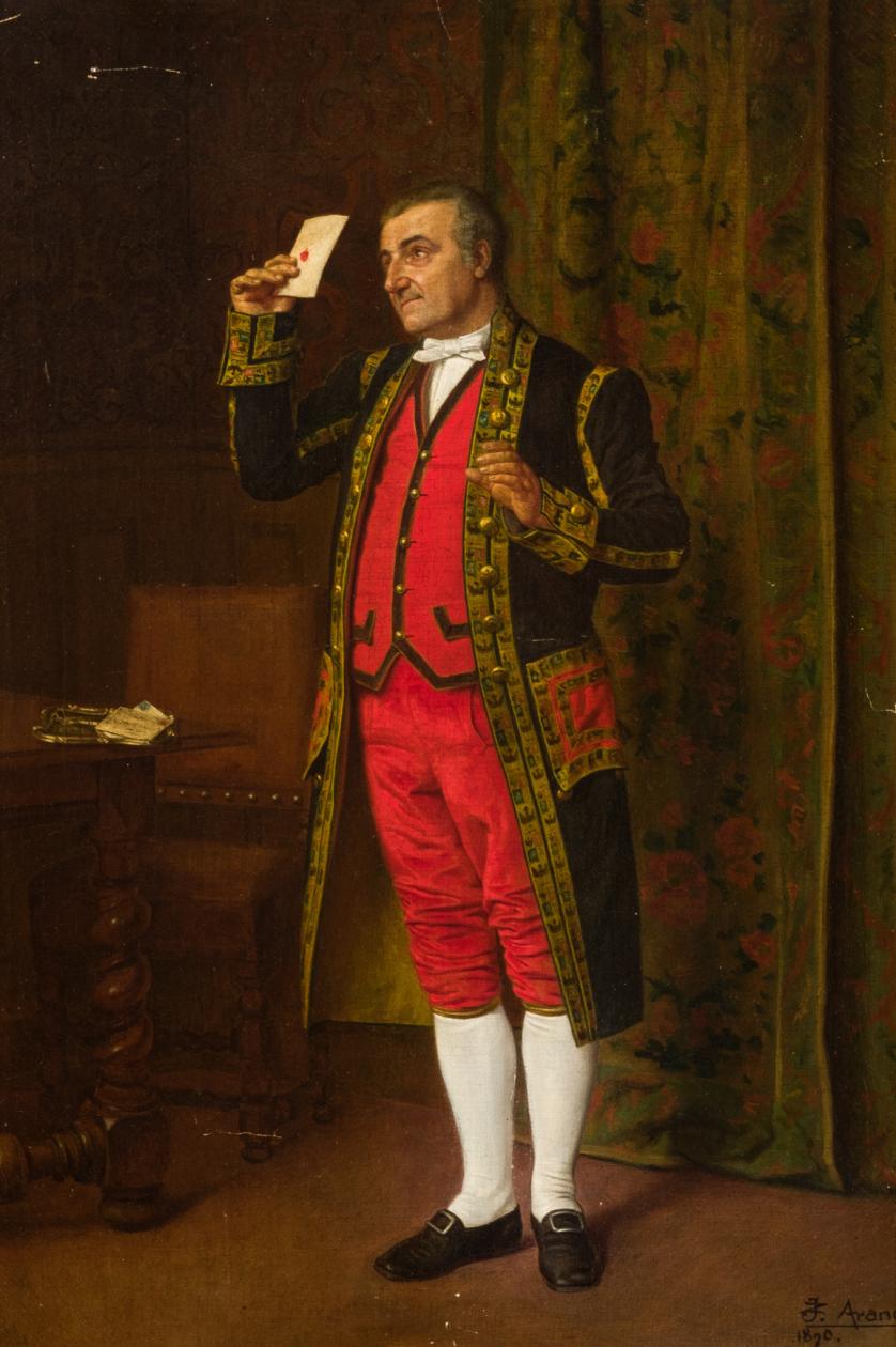 Bernabé Antonio Cano, de ascendencia isleña (Canaria), figura en este retrato con un año de edad. Tanto el sobre escrito de una carta que porta en su mano como parte de la inscripción dispuesta en la cartela (que proporciona, además, algunos datos biográficos) indican que fue realizado en México para remitirlo a Tenerife y que así su abuela, pudiera conocer el aspecto de este niño y de otro hermano suyo.