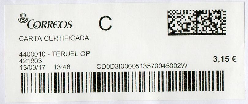4400010-TERUEL OP / CARTA CERTIFICADA / 13-03-17