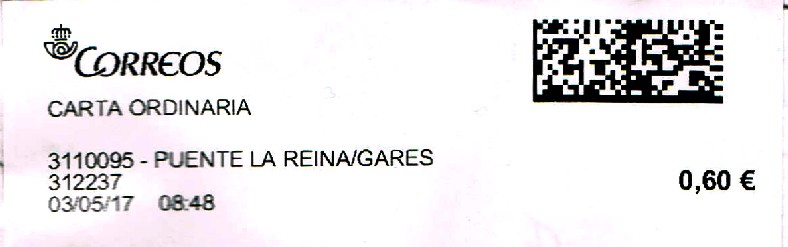 ET 5050001-TARAZONA / CARTA ORDINARIA / 30-01-17