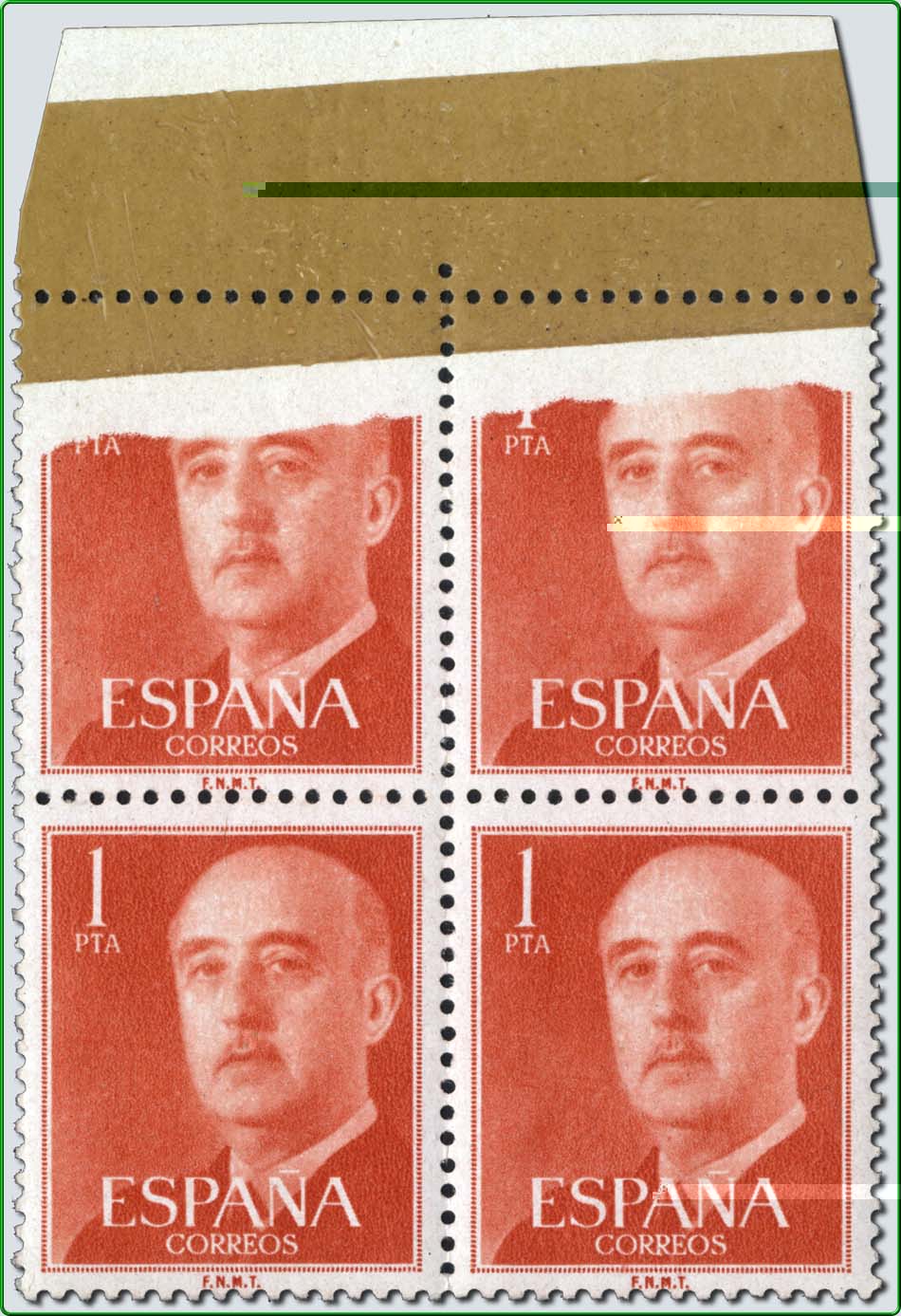 Se trata del pliego especial con 140 campos de trepado que en el capítulo VI Dentado y sistemas de trepado lo atribuyo exclusivamente a los pliegos del valor de 15 céntimos, en la letra B de la foliación negra impreso en el año 1955. Sin embargo, posteriormente, he pedido conseguir un pliego de esas mismas características con la foliación en negro H 39383.