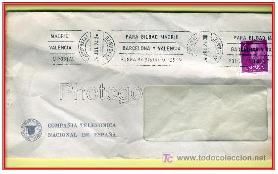 Aquí un 2 pts. púrpura circulado, año 1974, desde Alicante, cuando hasta la Telefónica de las Matildes franqueaba con sellos.