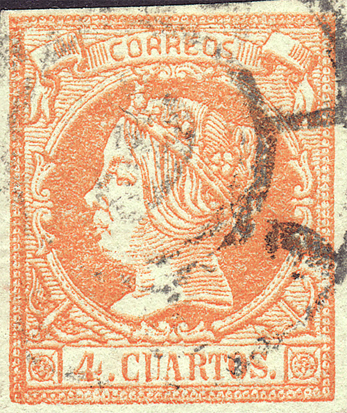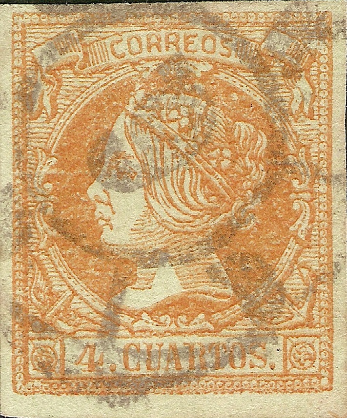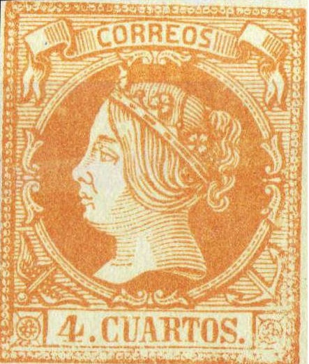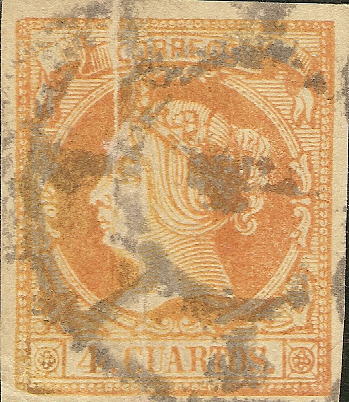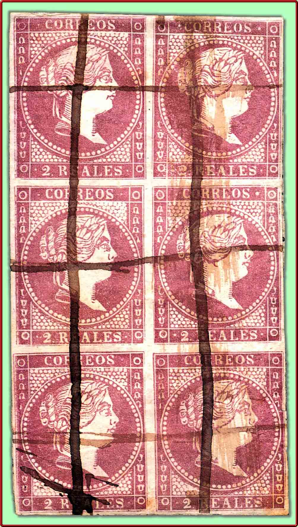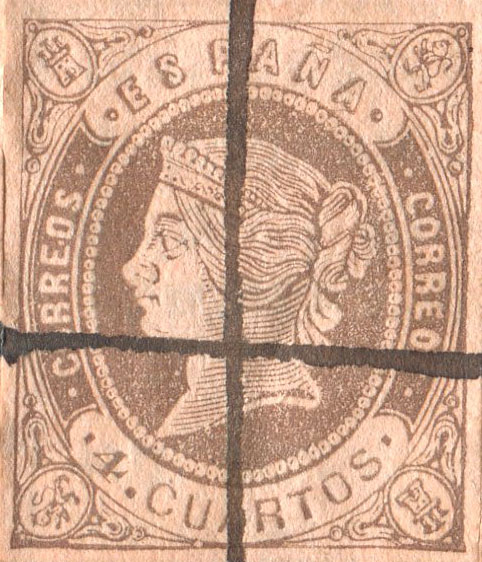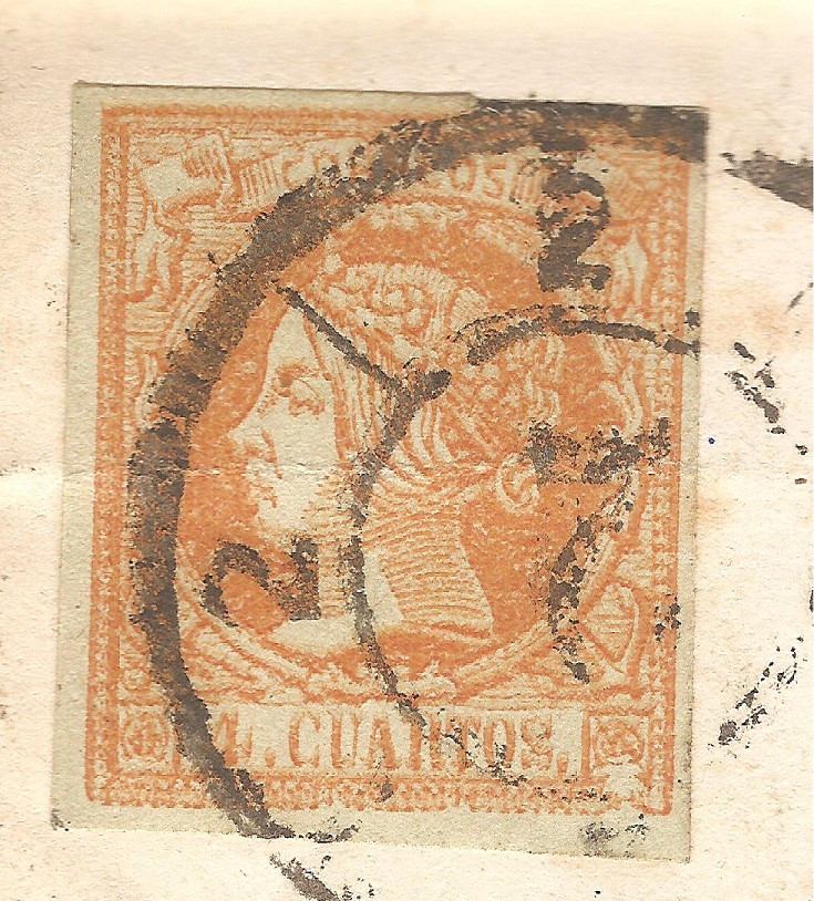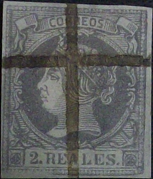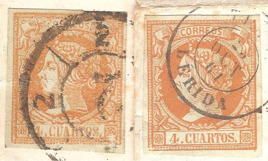 Lo mismo acaeció con anterioridad en la emisión del 2 Reales de Abril de 1.856 con los sellos falsos procedentes de la empresa de periódicos "LA IBERIA" de Madrid como se puede comprobar en las imágenes que siguen.
