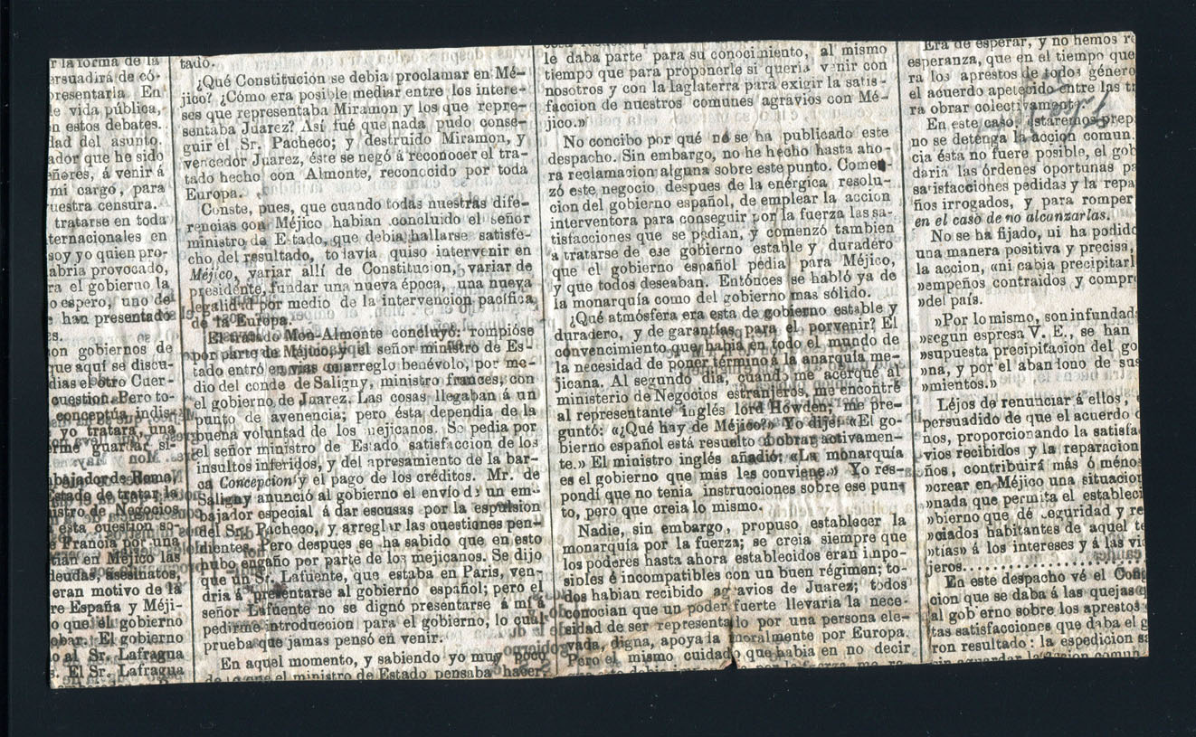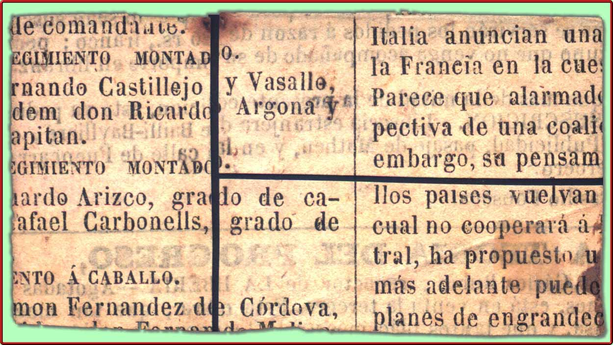 La curiosidad es que se encuentra pegado a lo que parece un trozo de ejemplar de periodico de la epoca.