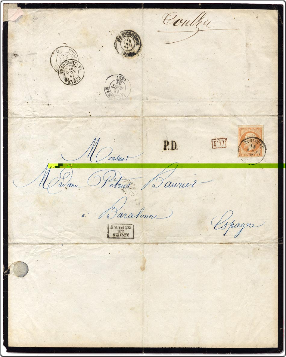 Respecto a la primera, las cartas clasicas Francesas me gustan mucho, y encima de luto. Faltaria desentrañar el texto, pero aun asi...![]()