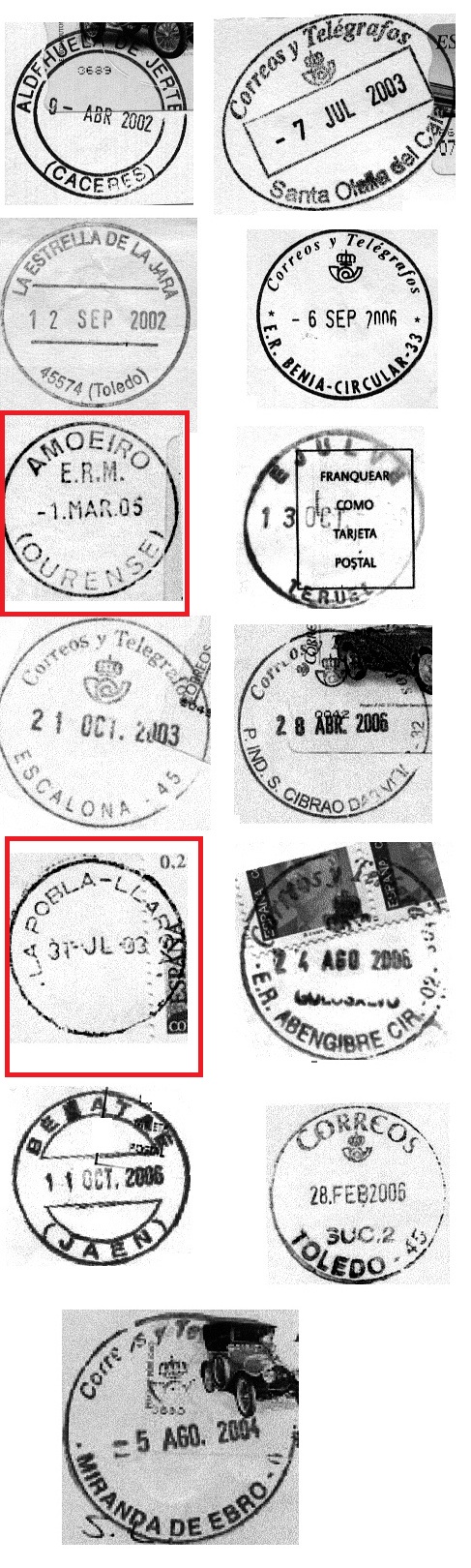 Fijaros que ambos están batidos con la tinta habitual de Correos.