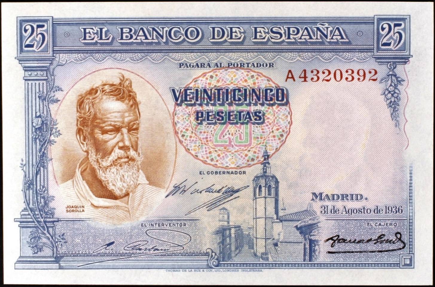 Y por cierto que tomando como modelo esa fotografía de Sorolla hay un gran billete español de los años treinta. En muchas fichas se dice que Camilo Delhom grabó el retrato, pero en realidad lo hizo Bohumil Heinz en Praga.