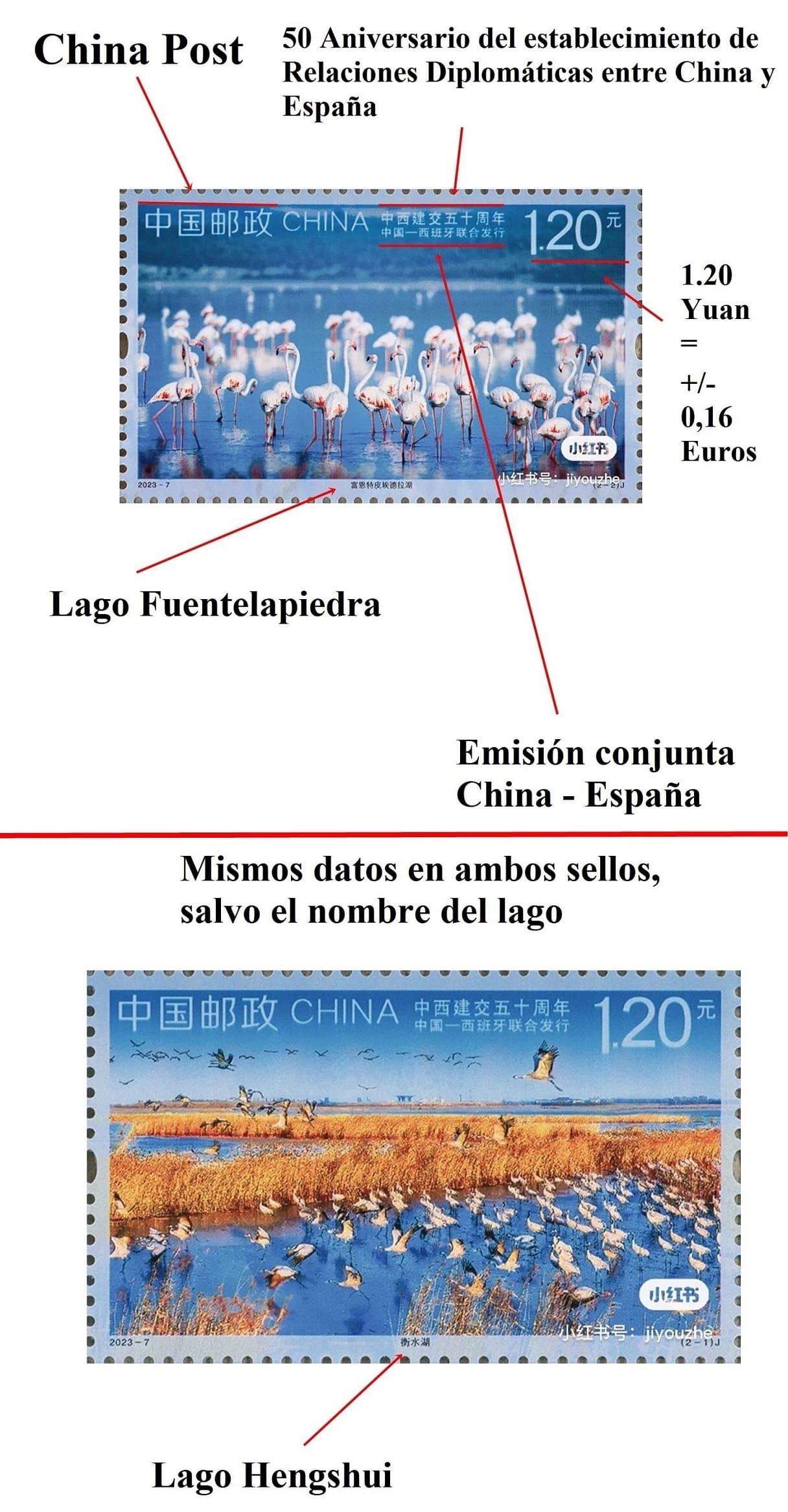 La confusión , si usa traductor en linea para leer los textos de las webs que alojan estos sellos, ocurrirá que el símbolo 西 lo traducirá por una de sus acepciones que es "Occidente" , osea, China-Occidente, pero al estar 西 acompañado por otros dos caracteres 班牙, ya se convierte en un nombre propio , por tanto la traducción de China y Occidente queda "anulada" , y se leerá China y España.