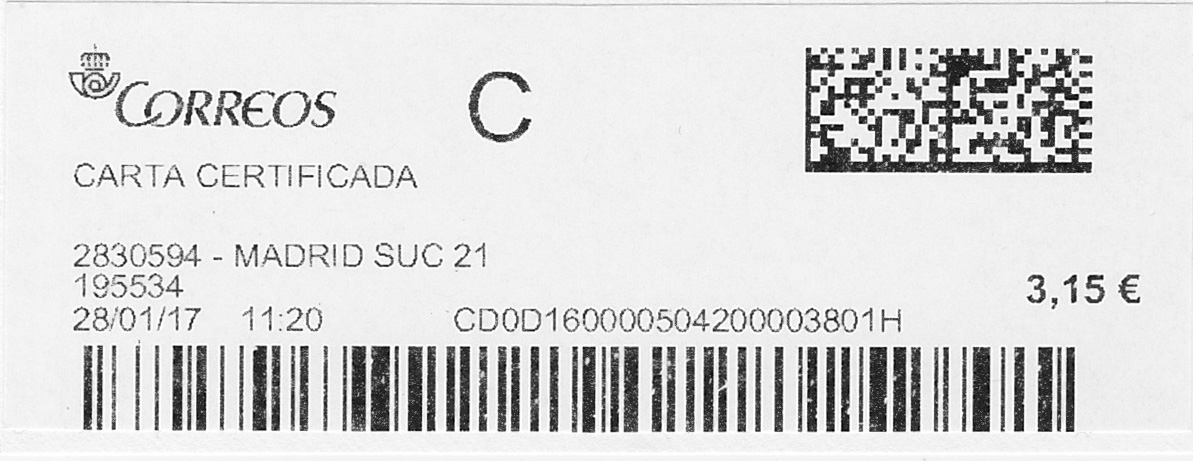 2897994-MOSTOLES SUC 3 / CARTA CERTIFICADA / 20-01-17