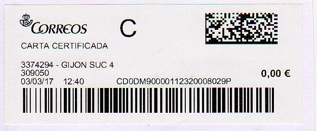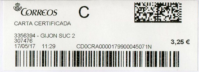 3356394-GIJON SUC 2 / CARTA CERTIFICADA / 17-05-17
