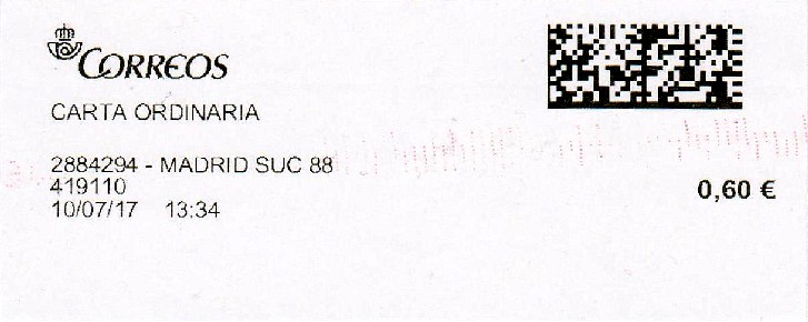 2828294-MADRID SUC 2 / CARTA CERTIFICADA URGENTE / 05-06-17