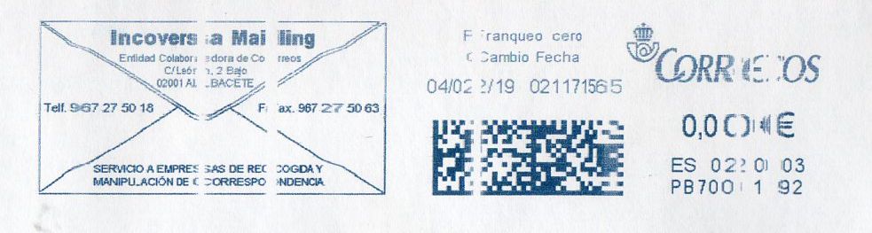 EQUIPO POSTAL PB700096 del 9 de enero de 2019, ¿Periodo de transición? ¿Falta de tiempo para reconvertir las máquinas? ¿Trabajo gestionado antes del 31 de diciembre pero con fecha de entrega el 9 de enero? :lol: :lol: :lol: :lol: :lol: