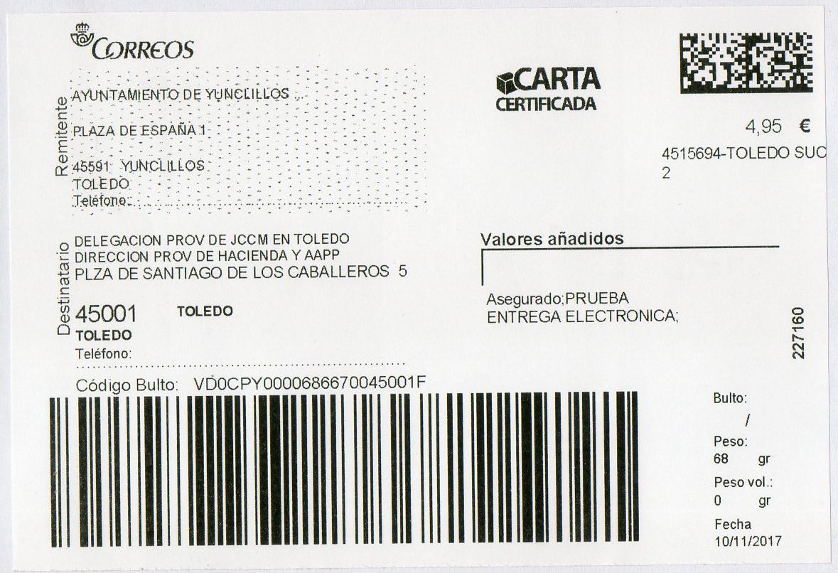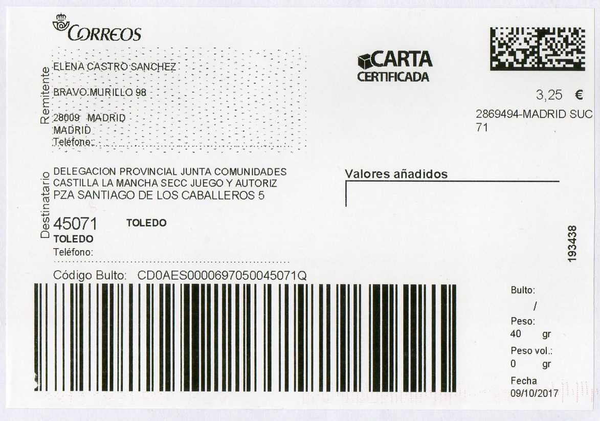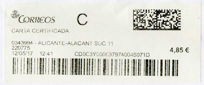 5014694-ZARAGOZA SUC 3 / CERTIFICADA URGENTE / 03-10-17