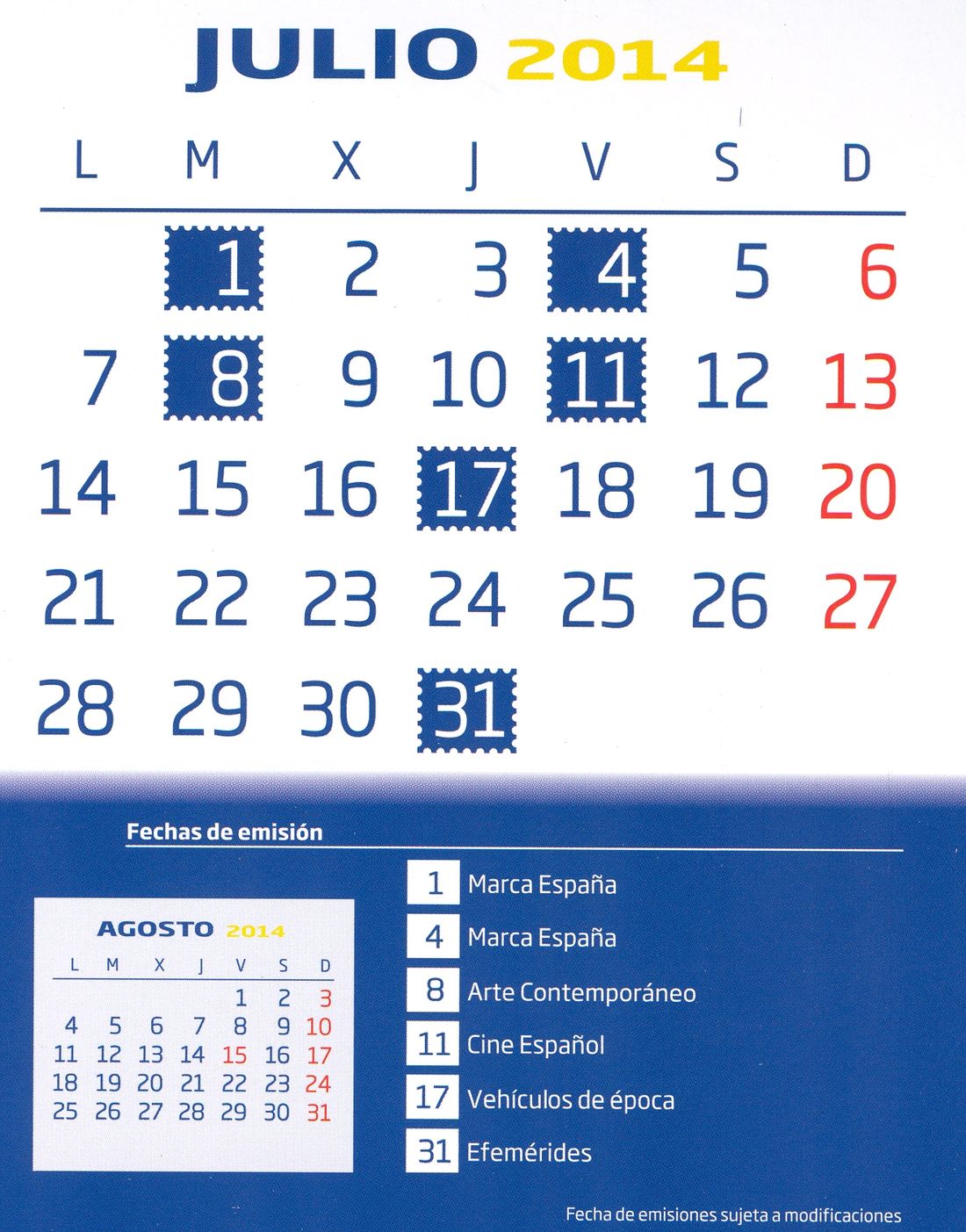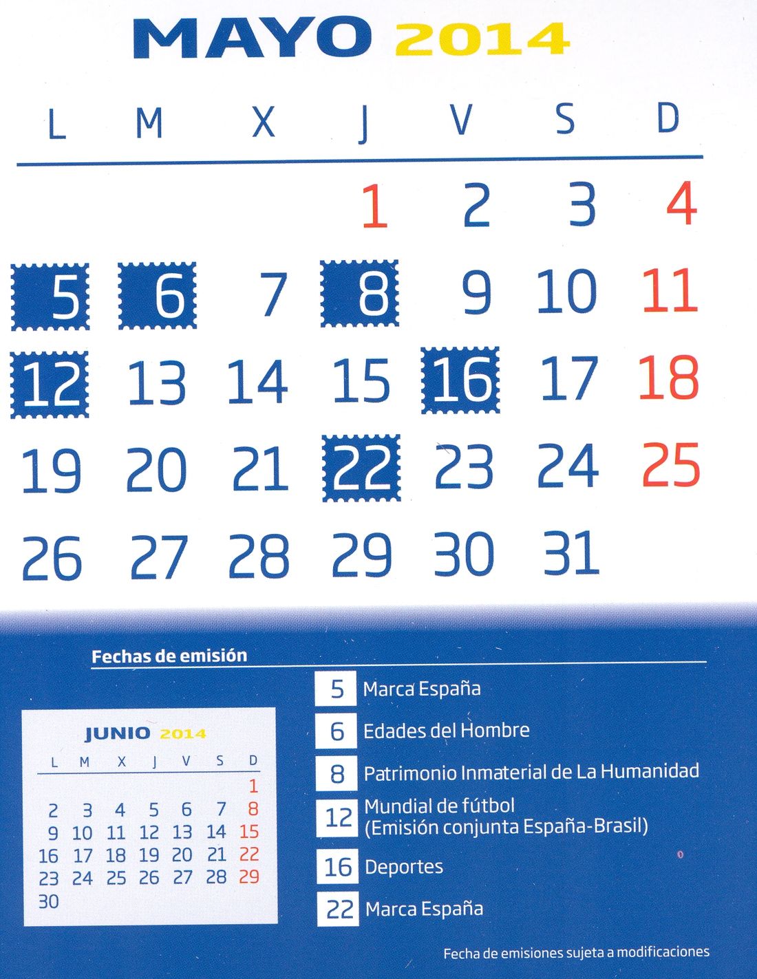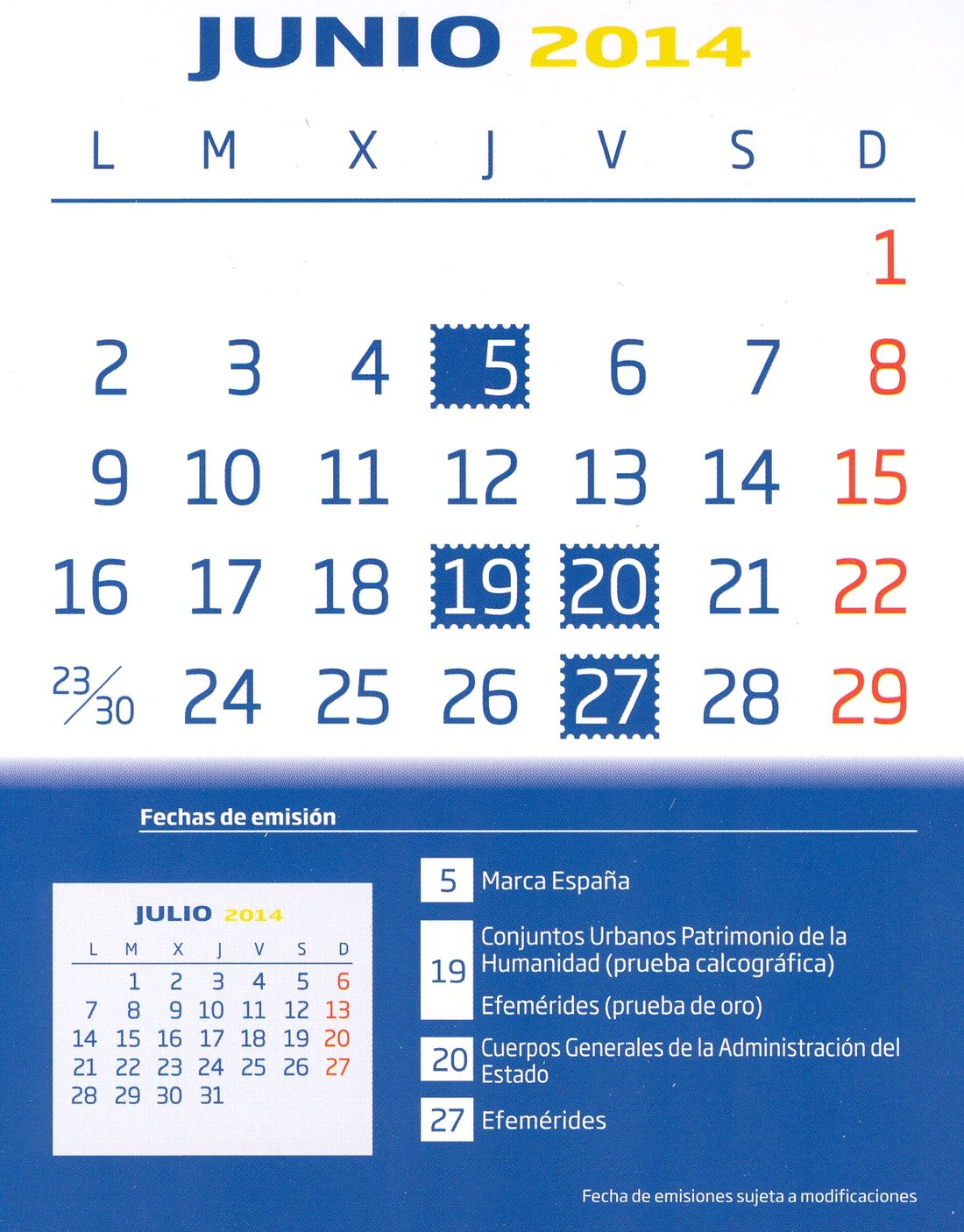 Pues bien, en dicho calendario figuran las emisiones previstas, junto con sus fechas respectivas, para el año 2014.