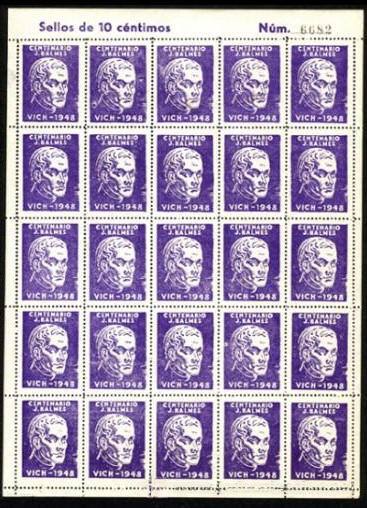 En cuanto a la viñeta de Jaime Balmes de 1948, muestro hoja de 25 viñetas