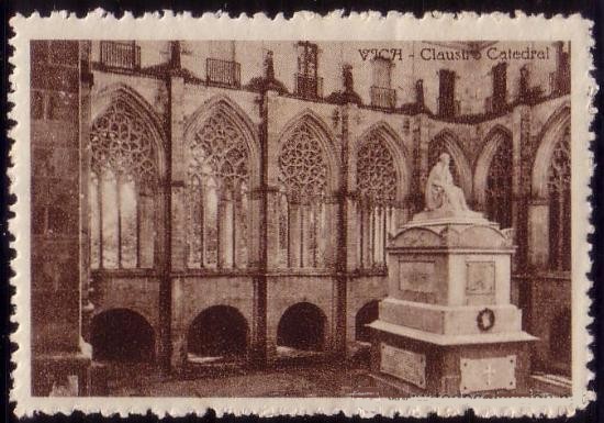 Te podré otras cosas de Vich ............una son los caustros del Monasterio y la otra es el padre Claret, que hace mención a VICH, aunque yo creo que debe de ser por algo que hizo el personaje, no por su nacimiento que fue en Sallent (barcelona).................... no sé si la viñeta pertenece a esta población,