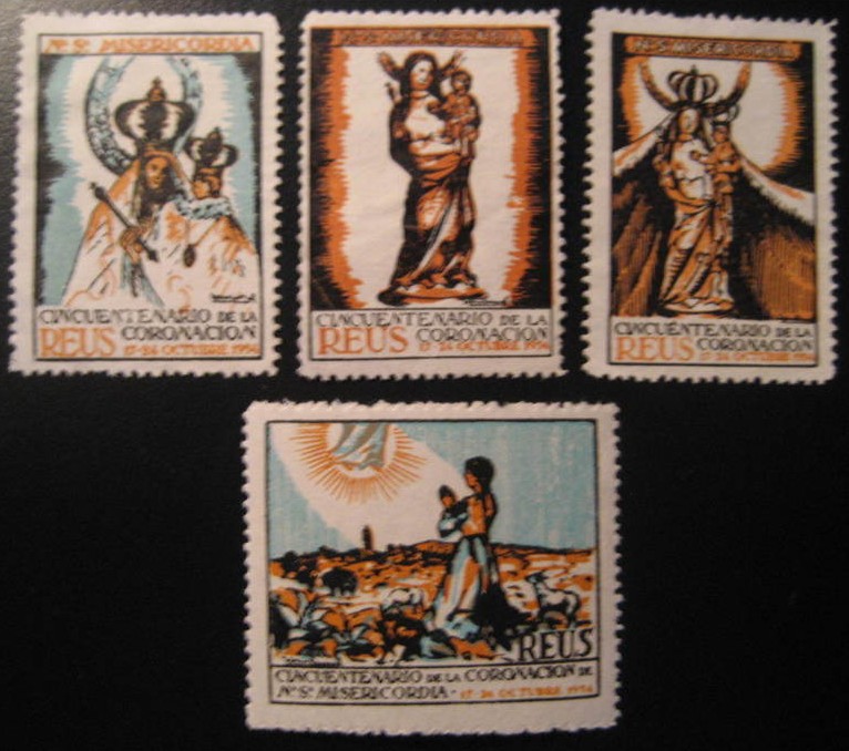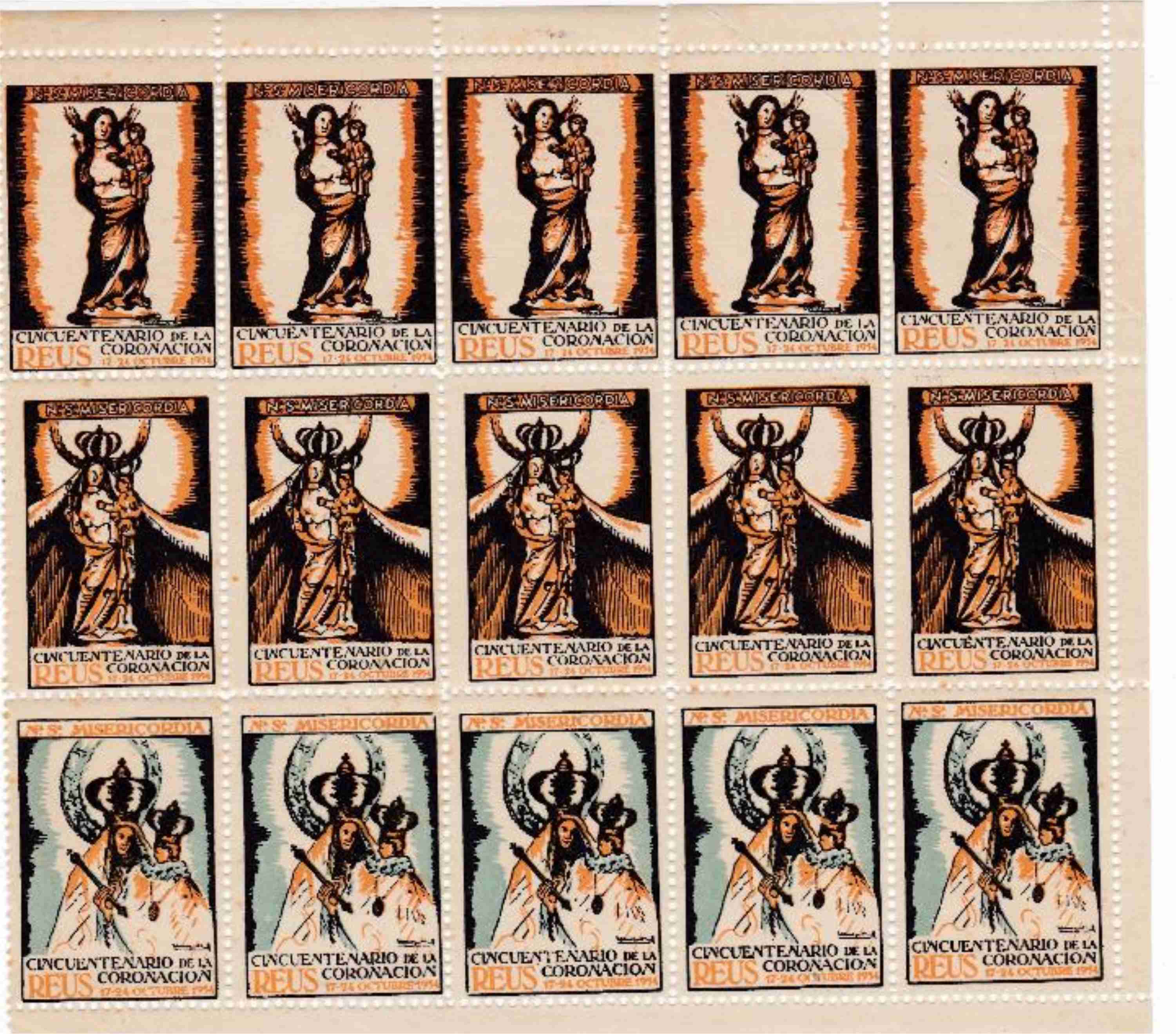 En estas viñetas del Cincuentenario de la Coronación de la Virgen de la Misericordia (1954) tengo el dilema del formato de sus pliegos. Las tres primeras iban juntas en tiras verticales, creo que cinco por pliego, la cuarta,,,, me gustaría saberlo.