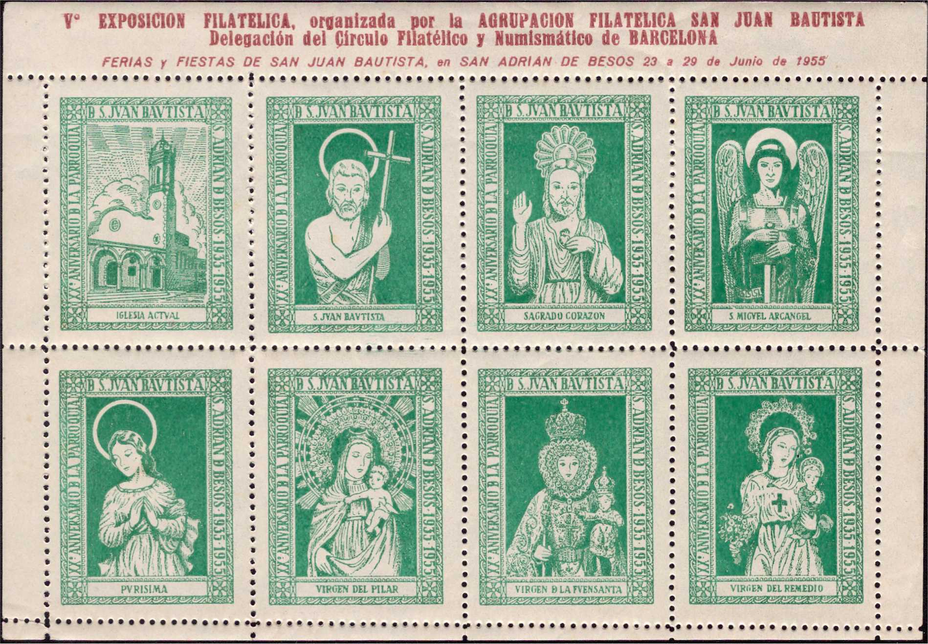 Hoy pongo una hojita de la V exposicion filatelica de Sant Adrià de Besos, yo la tengo en verde, rojo y azul, desconozco si se hizo en mas colores.