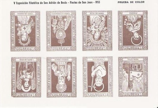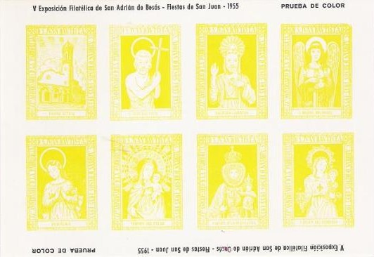 De estas pruebas hay en color castaño, rosa, amarillo, carmin....... tambien las hay con la leyenda de Prueba de COLOR y la cabecera....... existen con esta leyenda y las imagenes invertidas........ e incluso hay con doble cabecera.