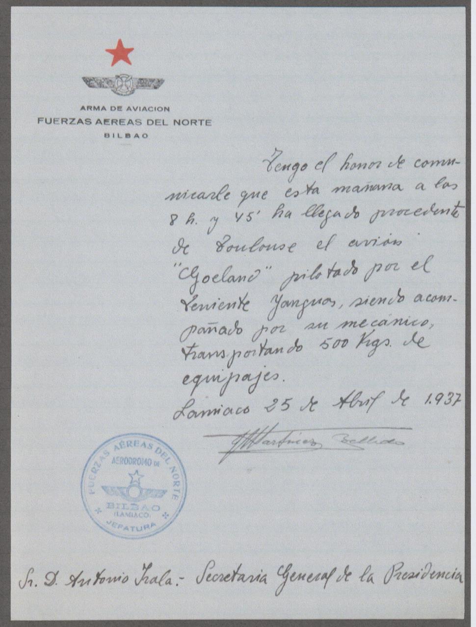 Investigando en el archivo de la Diputación de Bizkaia, he encontrado diversos documentos de los años 1936-7, Guerra Civil, sobre los aeródromos de Sondica y Lamiako. En estas localidades se encontraban los dos aeropuertos que la República usó durante la guerra tanto militar como civil.