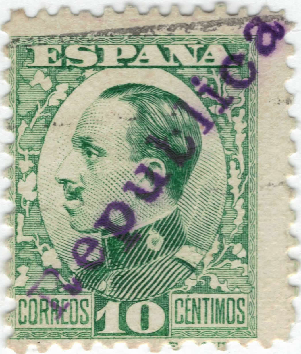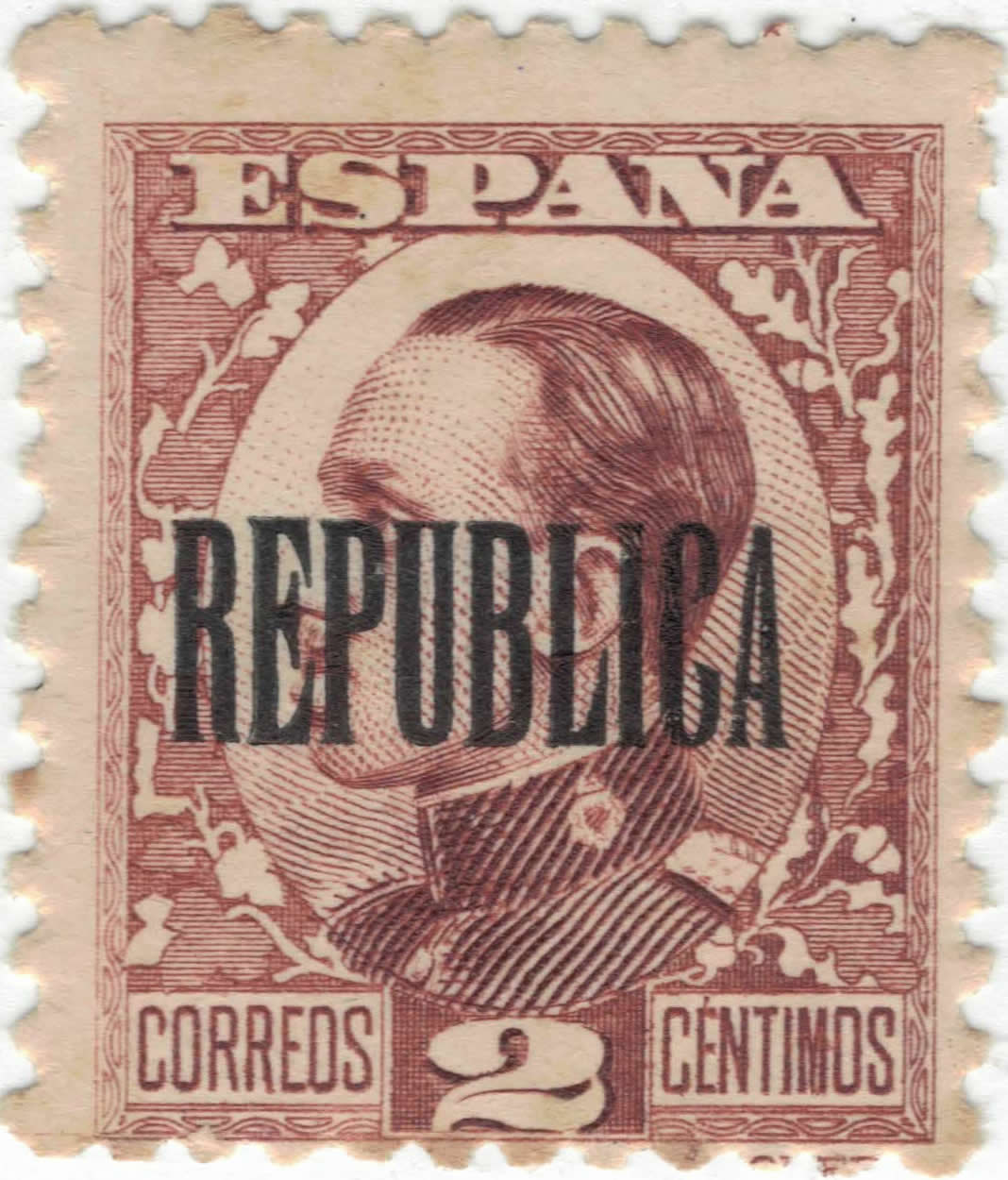 Una de las primeras medidas tomadas por el gobierno republicano en 1931 fue suprimir la abundante simbología monárquica que impregnaba todos los ámbitos de la sociedad. En los sellos este proceso se realizó mediante sobrecargas realizadas en la FNMT, cuya validez se extendió hasta 1935. En la "Gaceta de Madrid" (11-1-1935) se dispuso que: ... carecerán de todo valor...[los] sellos emitidos durante el extinguido régimen monárquico, aunque éstos estuviesen sobrecargados con las palabras "Republica Española...". Por lo tanto desde mi punto de vista solo son auténticos los de sobrecarga emisión 1931 Edifil 593/603 con la efigie de Alfonso XIII.