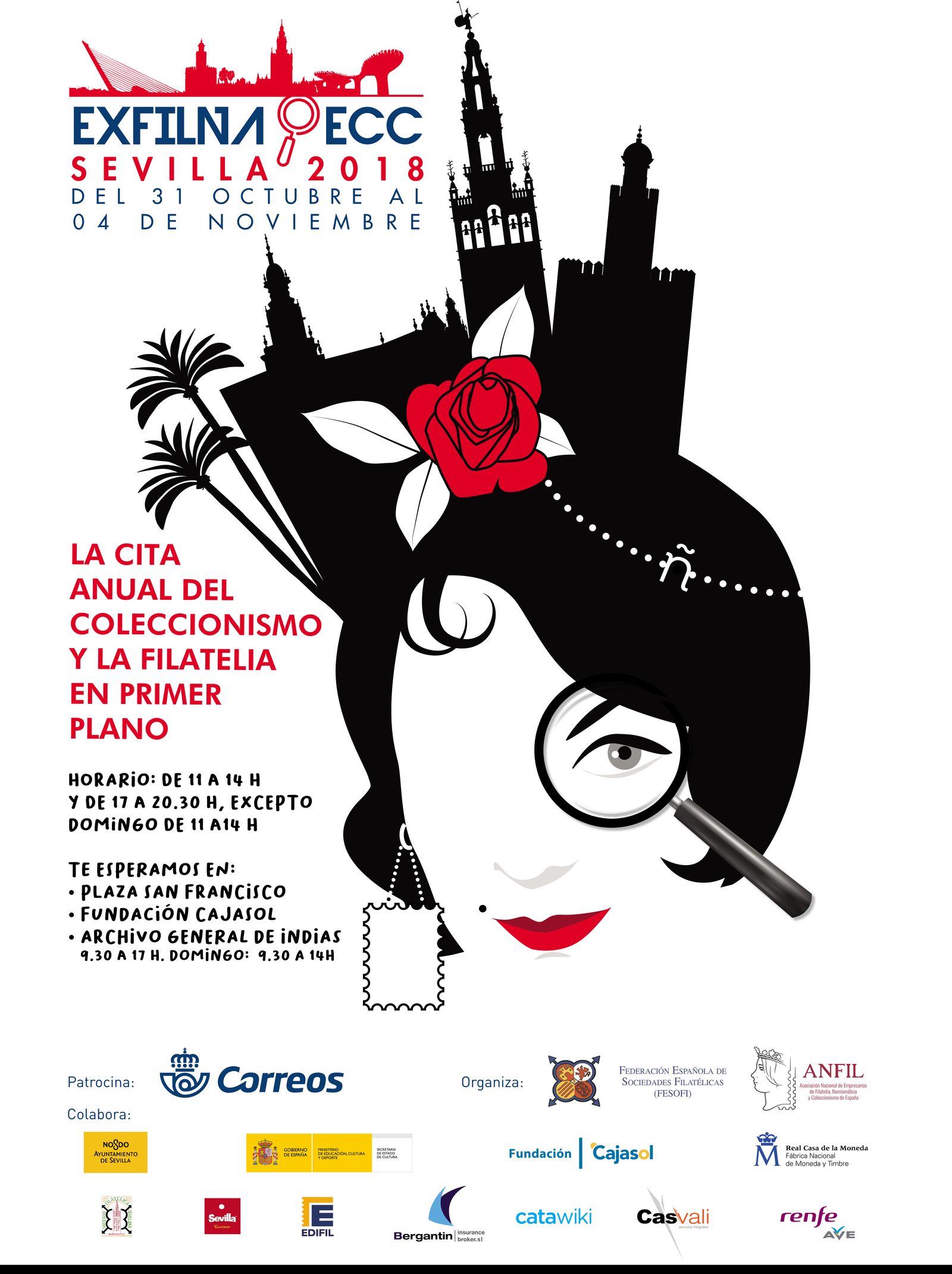 LA EUROPEAN CONVENTION FOR COLLECTORS DE SEVILLA 2018, promovida por la Asociación Nacional de Empresarios de Filatelia, Numismática y Coleccionismo de España, ANFIL, dentro de la ECC-EXFILNA 2018 organizada conjuntamente con FESOFI, Correos y RCM-FNMT, además de la colaboración de diversas entidades y empresas del sector. Se celebrará del 31 de octubre al 4 de noviembre de 2018 en la instalación de la Plaza de San Francisco de Sevilla.
