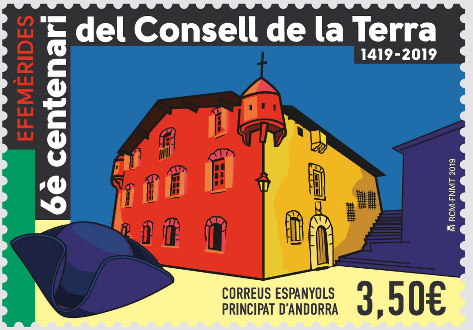 Dios mediante, el día 11 de febrero de 2019 se pondrá en circulación un sello de correo correspondiente a la serie del Principado de Andorra «Efemèrides», denominado 6è Centenari del Consell de la Terra 1419-2019.
