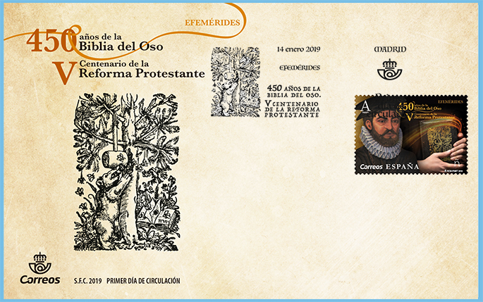 El Servicio Postal de México (SEPOMEX) ha emitido un sello postal conmemorativo del 450 aniversario de la Biblia del Oso, la primera traducción completa de la Biblia en castellano, realizada desde los idiomas originales por un protestante español.