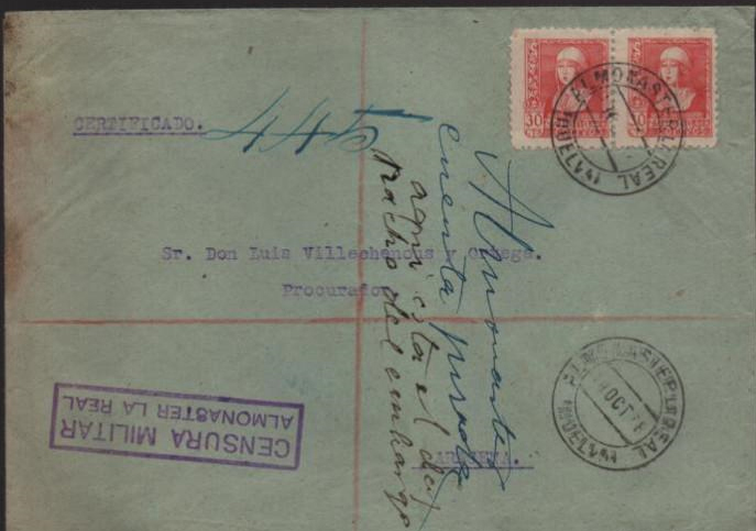 Puente cerrrado Huelva. Rociana. 1944-04-01. Carta. Anverso. Baja.jpg