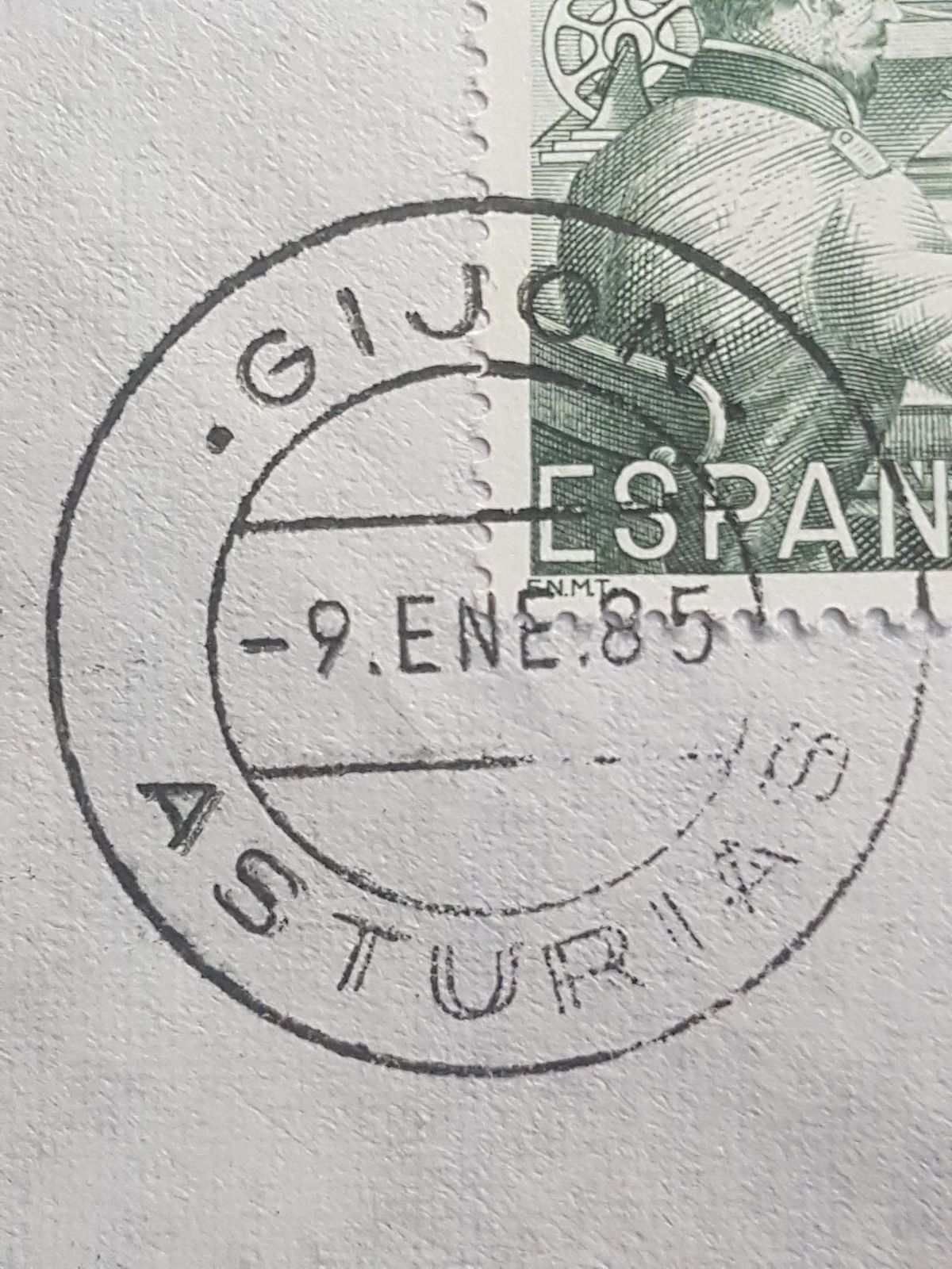 Es fecha inicial del Tipo PA 2: la leyenda baja de la línea superior del puente y la O de GIJON va sin acento.