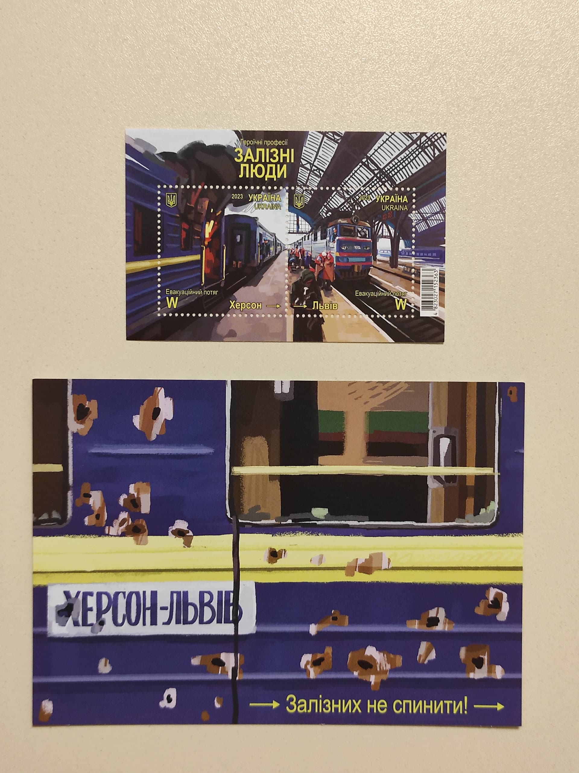 La serie postal "Profesiones heroicas" está dedicada a personas de diversas especialidades que trabajan con valentía y desinterés por la victoria de Ucrania. La serie comenzó en 2023 con los "Guerreros de la Luz. Guerreros del Bien" y continúa con el número "Hombres de Hierro", que está dedicado a la heroica labor de los trabajadores ferroviarios.