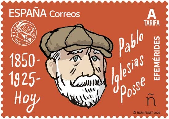 EN EL MATASELLOS DE PRIMER DÍA DE CIRCULACIÓN DEDICADO A PABLO IGLESIAS POSSE, EN LUGAR DE PONER "A CORUÑA", DEBERÍA SER "FERROL"; LUGAR DE SU NACIMIENTO.