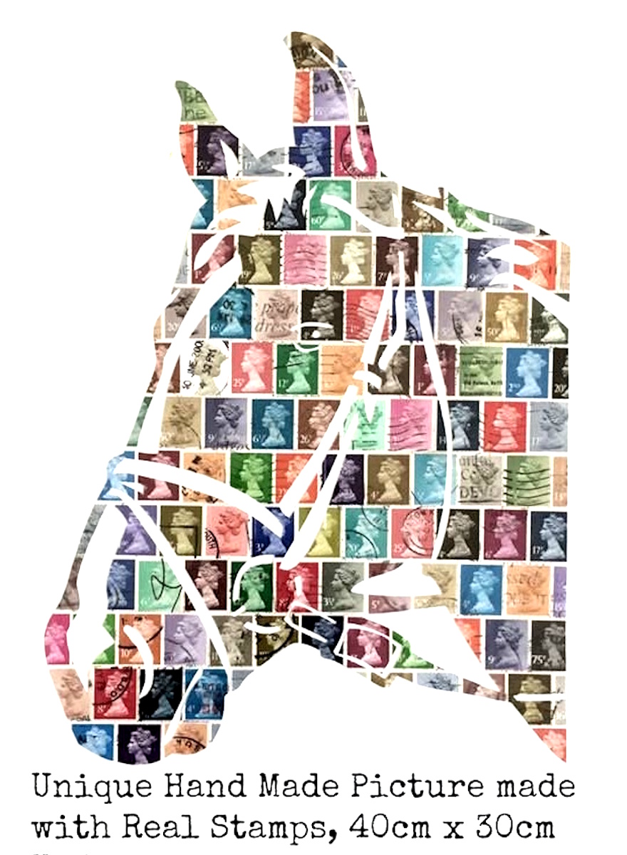 Hay otras vertientes dentro del arte con sellos, lo hemos podido ver este año en la Feria del Sello en la que una figura del caballo de Felipe III se cubrió con sellos y no es la primera vez que esto ocurre, y me imagino que no será la última. También se hacen cuadros con sellos recordemos el que se expuso en otra Exfilna con la recreación de un sello retrato de Juan Carlos I hecho con sellos de la misma efigie. Me viene ahora también a la cabeza las escenografías de los Musellos hechas por Correos, en la que se recreaba en una maqueta un museo en la que las pinturas eran sellos.
