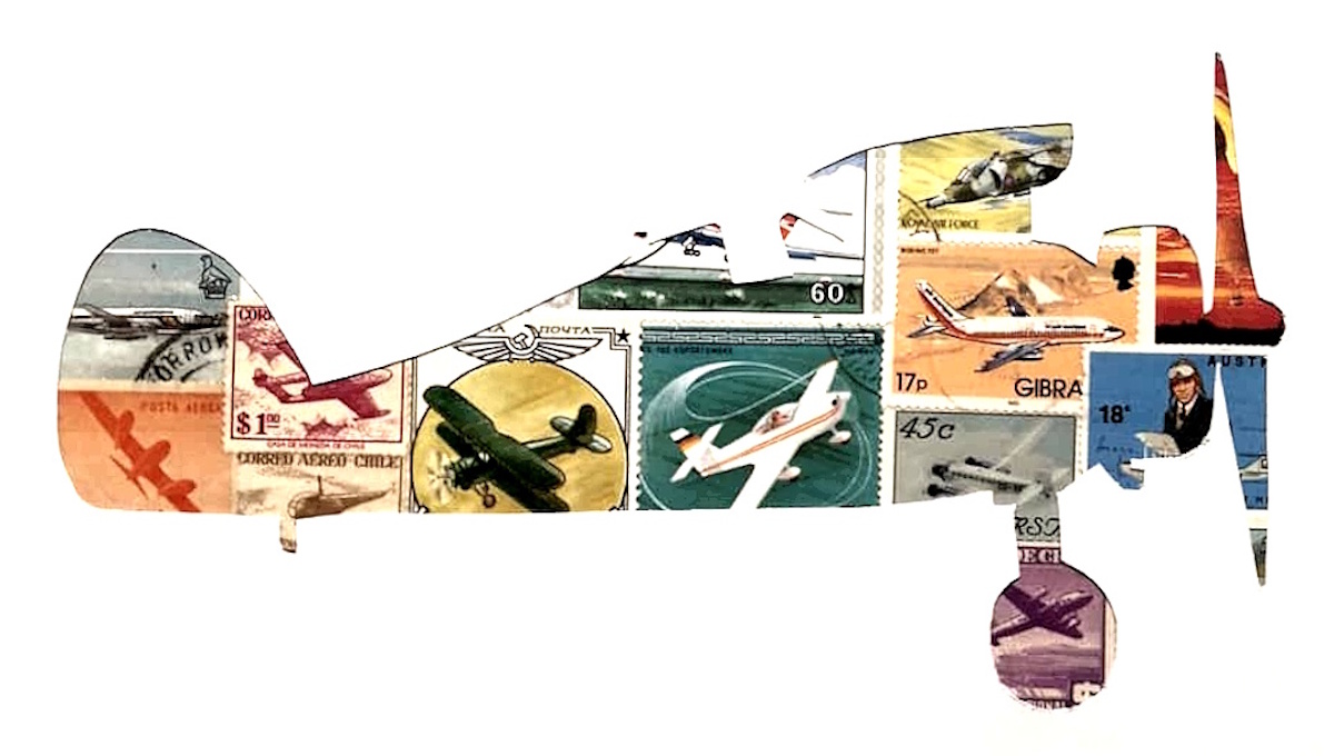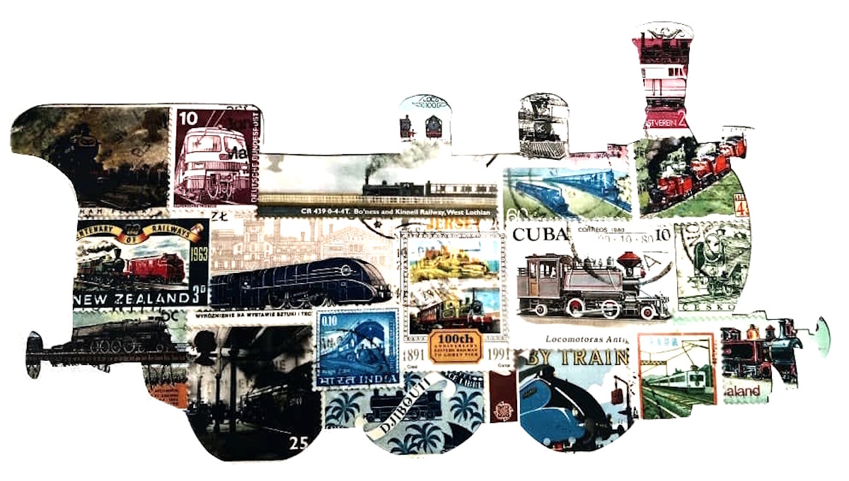 Otra subcategoría de las siluetas de figuras compuestas con sellos que se ven mucho son las dedicadas a representar vehículos de transporte de todo tipo: he visto trenes, globos aerostáticos, aviones y aeroplanos de todo tipo, cientos de coches diferentes, barcos, submarinos, cohetes, etc.