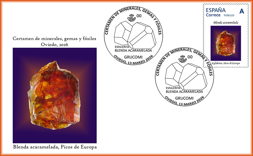 Creo que el matasellos conmemorativo del CERTAMEN DE MINERALES, GEMAS Y FÓSILES. OVIEDO 2026 es el numero 07.