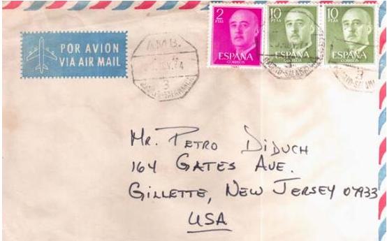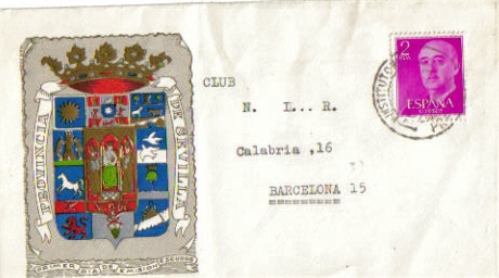 Os envío el entero postal de la emisión de 1962 con el matasellos especial de la Reunión de la Real Sociedad Española de Física y Química que se celebró en Pamplona en 1967. Vá dirigido precisamente a mi recordado amigo Luis Gómez.