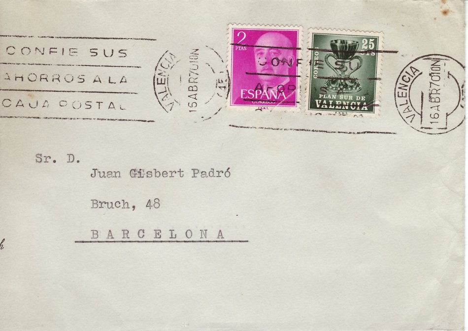 Otro de 1 pta. con fechador SUCURSAL AMBULANTE / MADRID del año, creo, 1963. Estamos hablando de las predecesoras de las oficinas móviles. En algún lugar del foro, hay una foto con una furgoneta-autobús de Correos prestando servicios en el extrarradio de la capital por aquellos años.