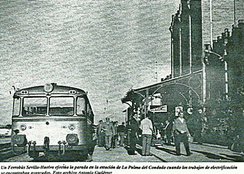 Siguiendo con los ambulantes que ha subido Eduardo, os subo imágenes de un fragmento al que le tengo especial cariño. Se trata del Ambulante de la línea de ferrocarril Sevilla-Huelva, popularmente conocida como "La Cochinita", que estuvo en servicio hasta mediados de 1978, una vez que los trabajos de electrificación de la red estuvieron concluidos. La Cochinita era un automotor ligero de tracción Diesel ,tipo ferrobus. Los primeros ferrobuses que recibe Renfe llegan a Sevilla en 1962, y formaban parte del plan de "dieselización" de 1956 que preveía eliminar la tracción vapor de numerosas líneas secundarias, que en su mayoría se encontraban explotadas con las locomotoras y coches más antiguos de la red. En 1966/67 fueron destinados al servicio de la línea Huelva-Sevilla San Bernardo,donde enlazaba con el Taf Madrid-Cádiz