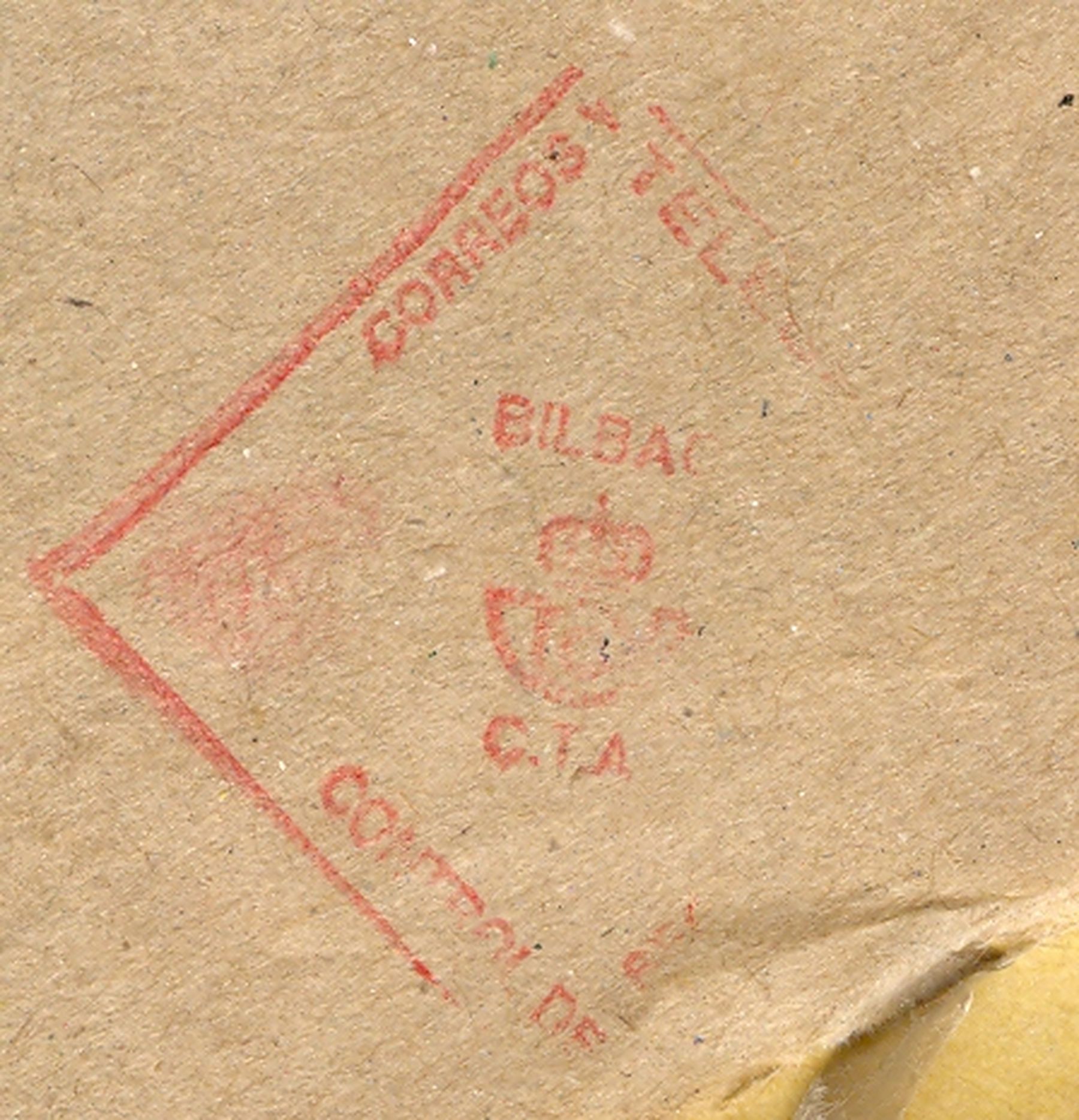 Pese a que la estampación no es perfecta, la denominación "C.T.A." aparece con puntos, cuando la catalogada (48.03) no los lleva y, por otro lado, la Y de CORREOS Y TELÉGRAFOS está situada más al borde en esta marca que en la catalogada.