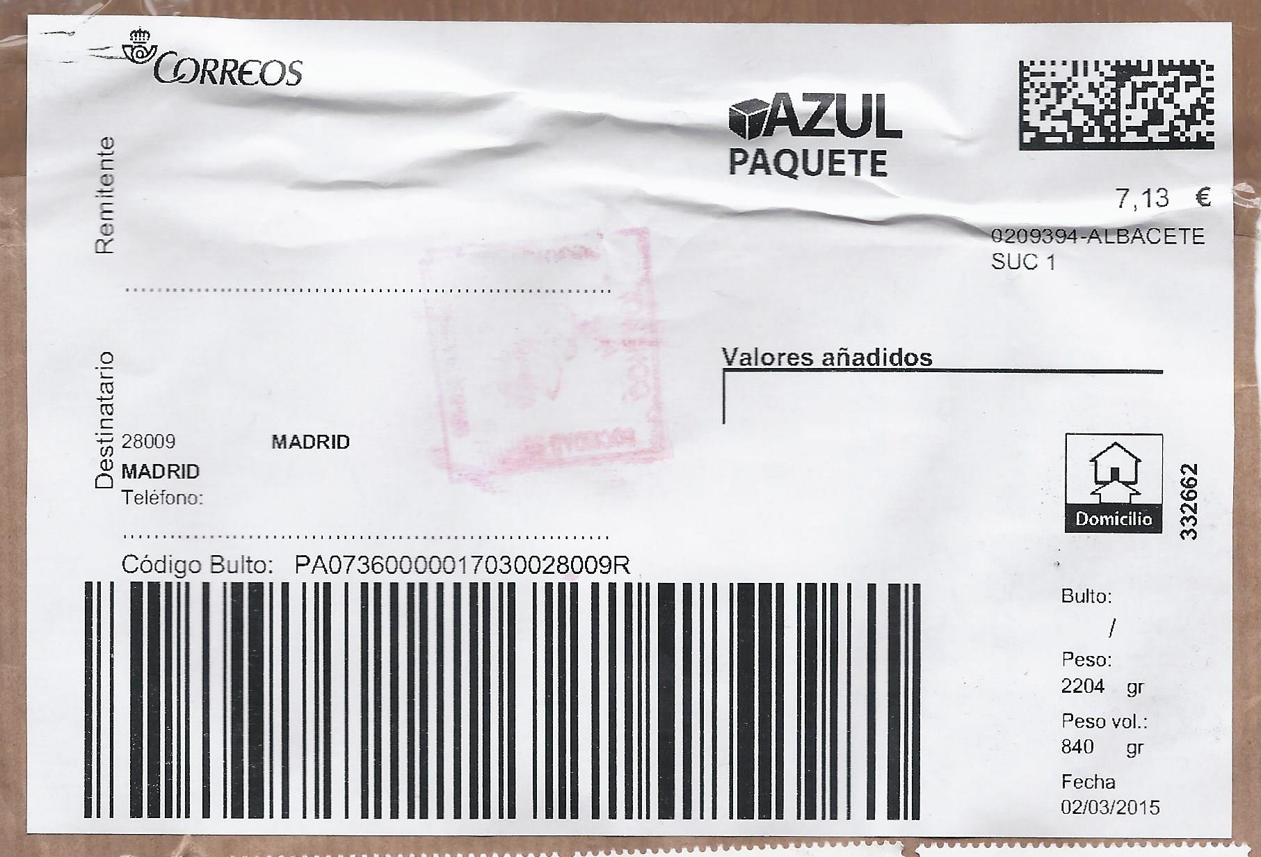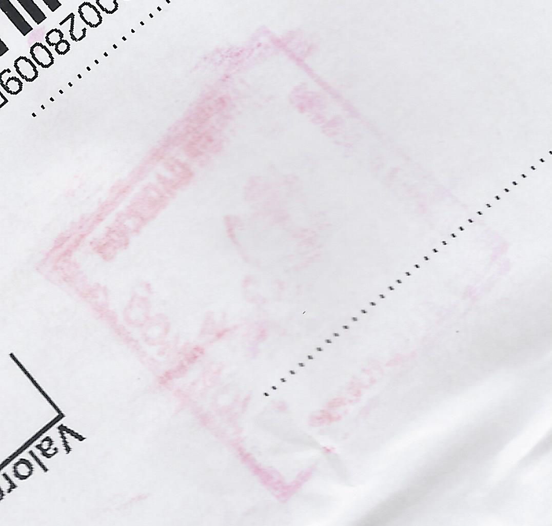 El tamaño de la marca es el grande (4,2 x 4,3) y está estampada con tinta negra, frente a las normales que son con tinta roja.