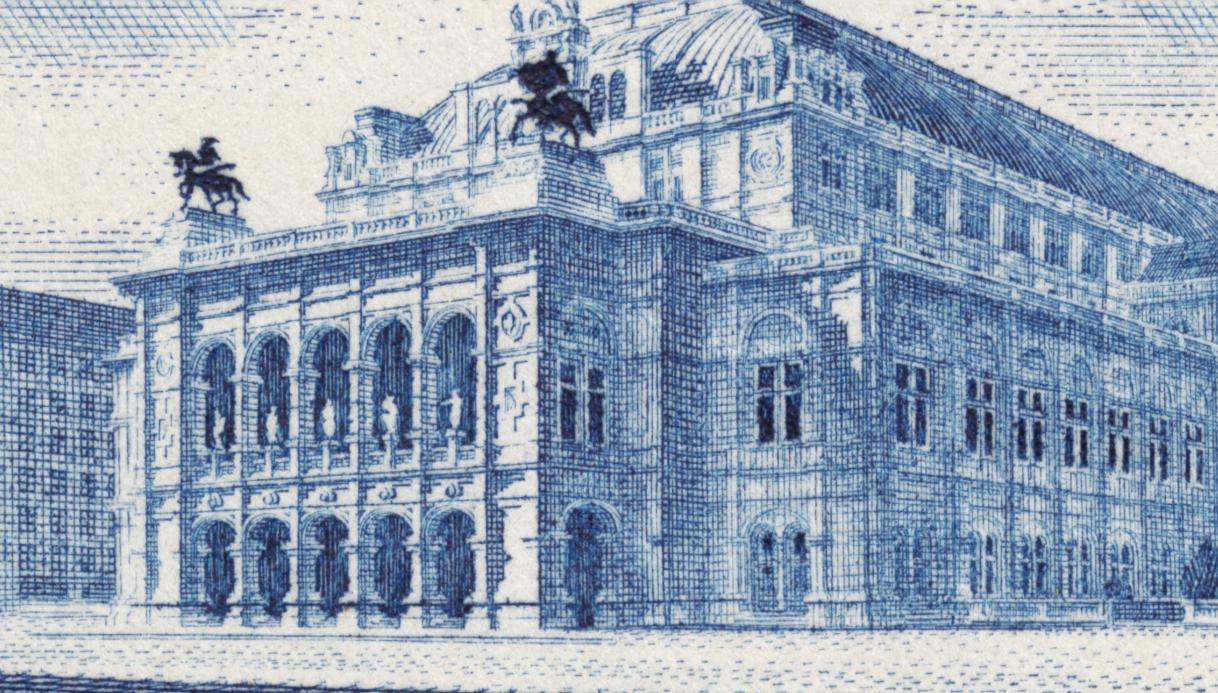 Y por último y de momento, en cuanto a Ranzoni se refiere, mostramos este sello de 1955, emitido para celebrar la reapertura de la Staatsoper, la Ópera Estatal de Viena: