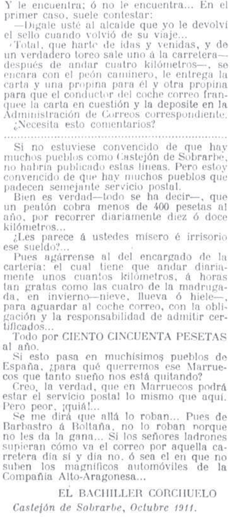 Mucha hemeroteca mi estimado!! Para las noticias que hay hoy en día prefiero leer las de hace un siglo que me dan aire... Y se encuentran muchísimas curiosidades postales que os comparto.