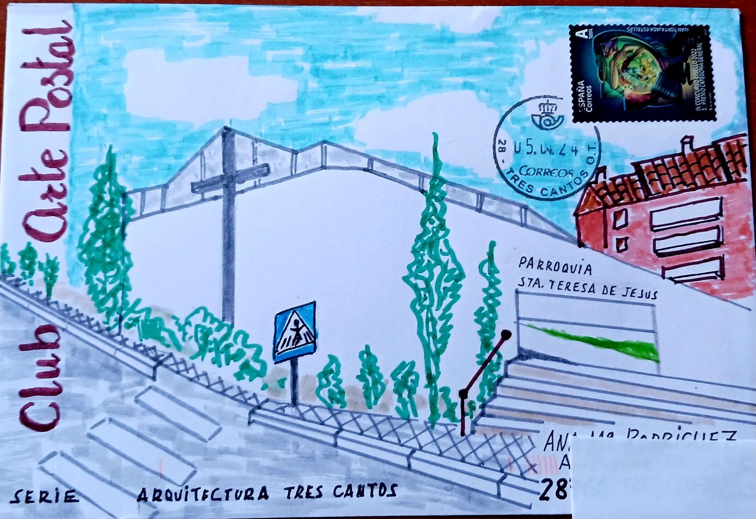 Retomando el inicio de estas breves notas sobre la historia de mi ciudad, confieso que dentro de nuestro evento del Club del Arte Postal varias veces me planteé dibujar, aunque fuera malamente, algunos rincones de Tres Cantos. Y ya habéis dado muestra de ello poniendo imágenes de las cartas recibidas en este hilo.