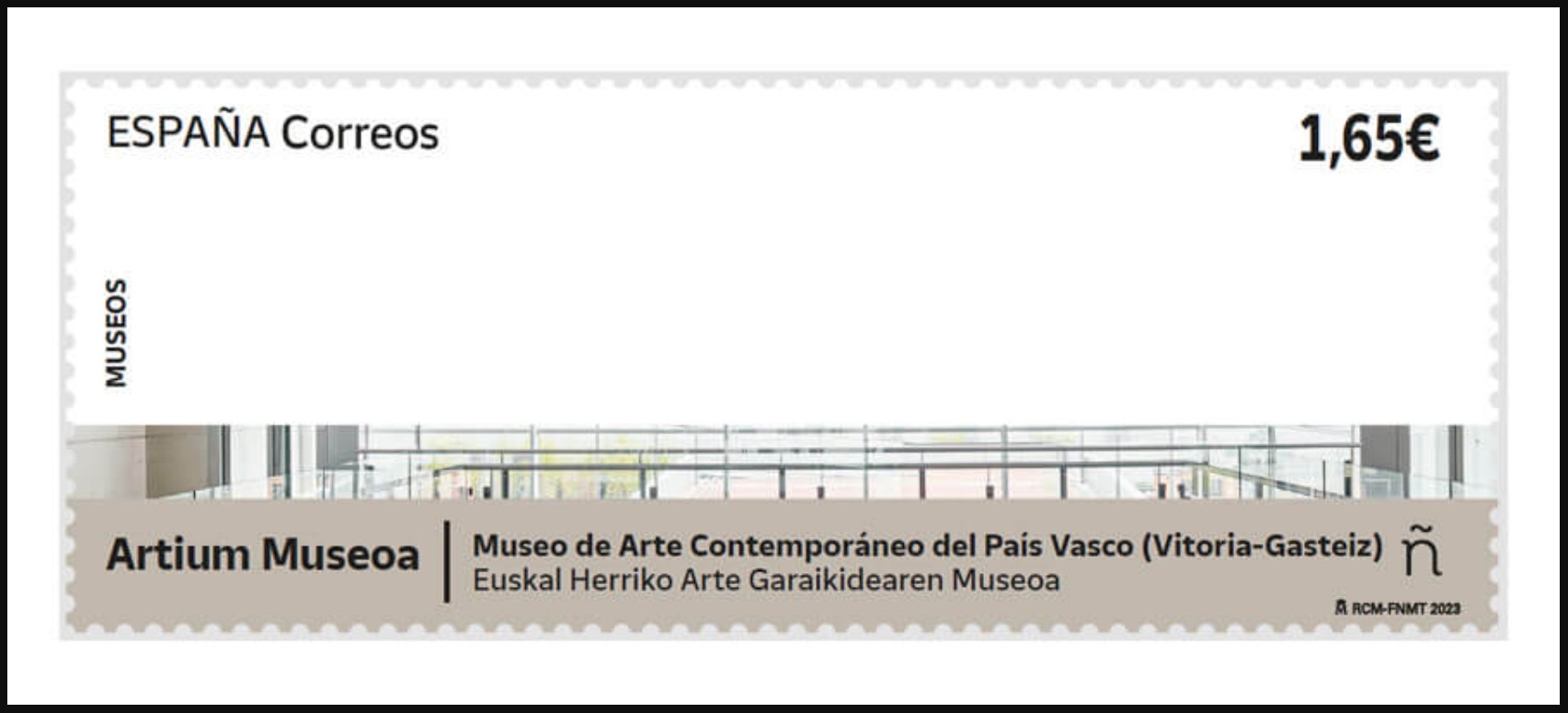 Estoy totalmente de acuerdo contigo con todo esto último que expones, Ramón, incluso con la crítica subyacente al Artium, un museo que no da mucho de sí, ni por fuera ni por dentro (lo digo con conocimiento de causa) y del que es difícil sacar nada bonito de él. El sello así da más juego, en una dirección o en otra, que con una foto regulinchi del museo y un diseño normal y corrientillo.