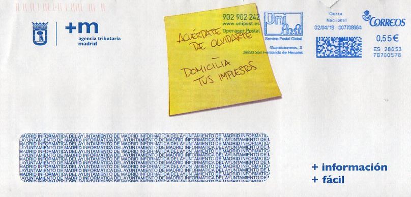 Alguien tiene una impronta mas antigua que esta de UNIPOST? "ACUERDATE DE OLVIDARTE" "DOMICILIA TUS IMPUESTOS"